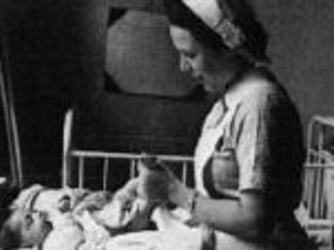 Ruth Arndt auf der Entbindungsstation im Jüdischen Krankenhaus Berlin, 1941