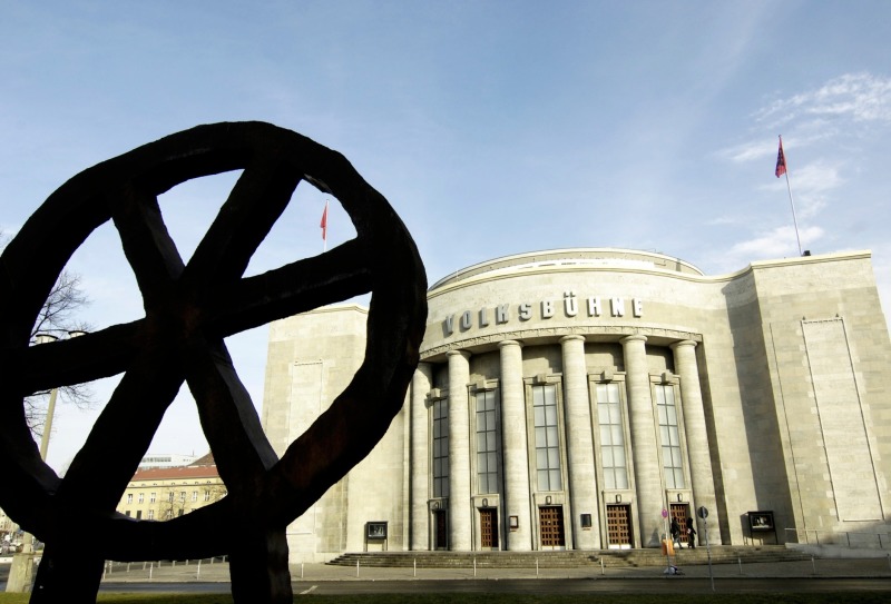 Theaterbauten stellen wie Bank- oder Regierungspaläste weniger ihre Funktionalität als ihre ideologische Positionierung aus. Im Fall der Volksbühne ist es der mit „Arbeitergroschen“ rapide erbaute wehrhafte Kulturtempel der Volksbühnenbewegung. DIE KUNST DEM VOLKE war dem Gebäude auf die Stirn gemeißelt – eine während kommender Spielzeiten in unterschiedlichen Gesellschaftssystemen oft und verschieden interpretierte Losung.