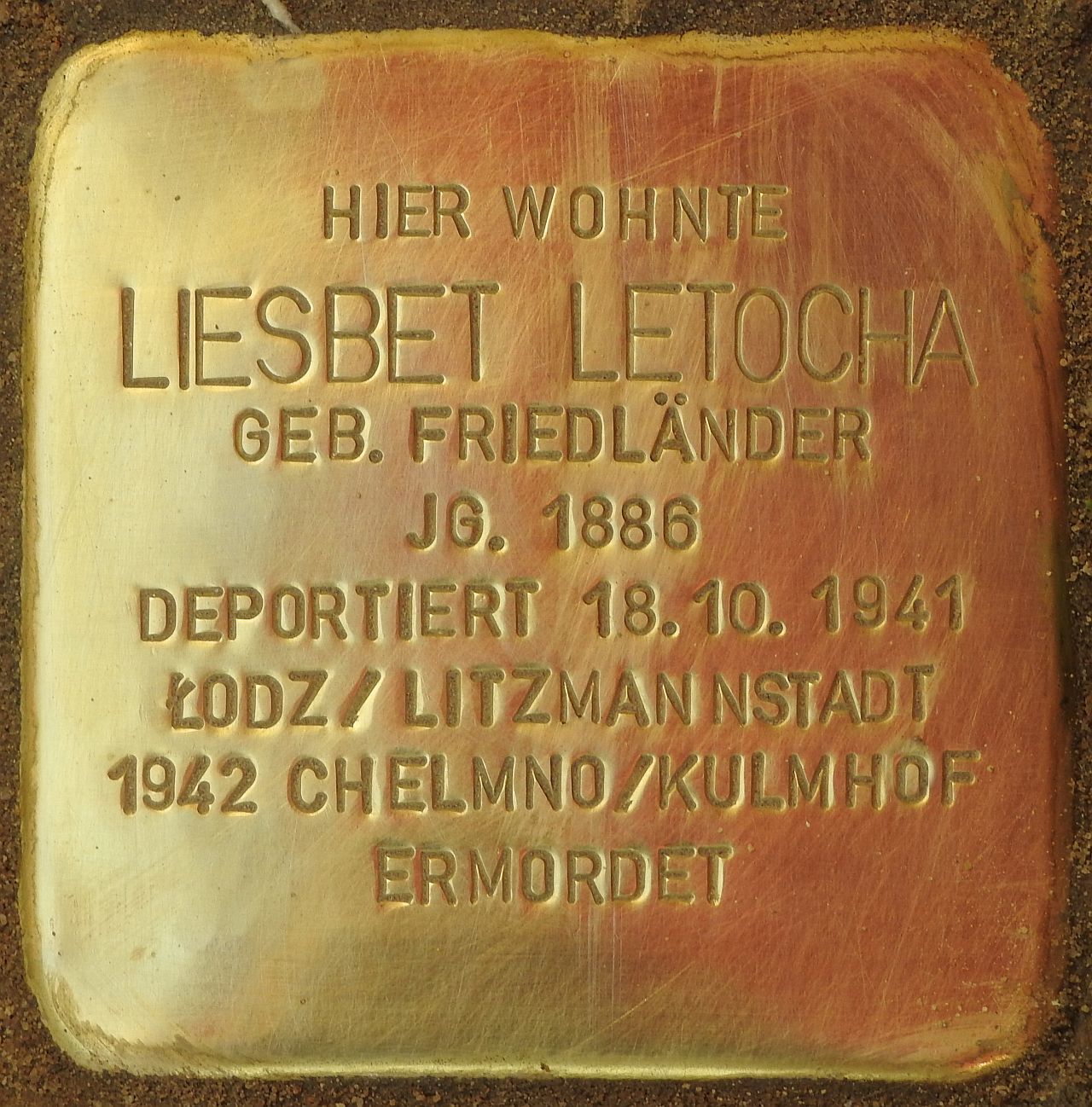 Jetty Linker wurde am 8. Mai 1942 in das Vernichtungslager Chelmo/Kulmhof verschleppt und dort ermordet.
