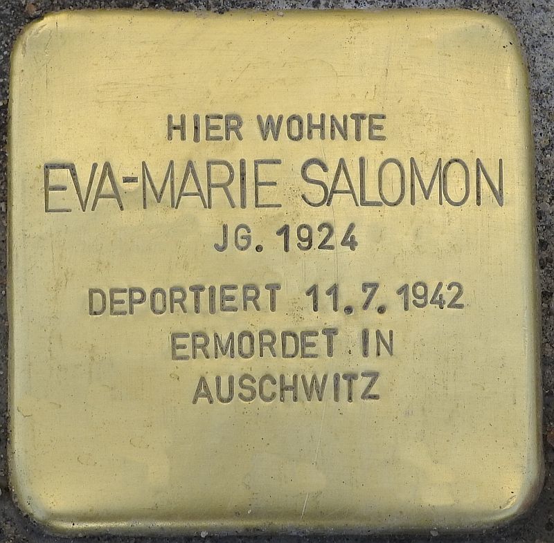 1942 wurden Toni Salomon und ihre Tochter Eva-Marie gezwungen in das Haus Maikowskistraße 107 (heute Zillestraße) umzuziehen, das wahrscheinlich ein „Judenhaus“ war. Sie wurden zusammen am 11. Juli 1942 in das Konzentrations- und Vernichtungslager Auschwitz-Birkenau deportiert. Toni und Eva-Marie Salomon wurden in dem Konzentrations- und Vernichtungslager Auschwitz-Birkenau ermordet.
