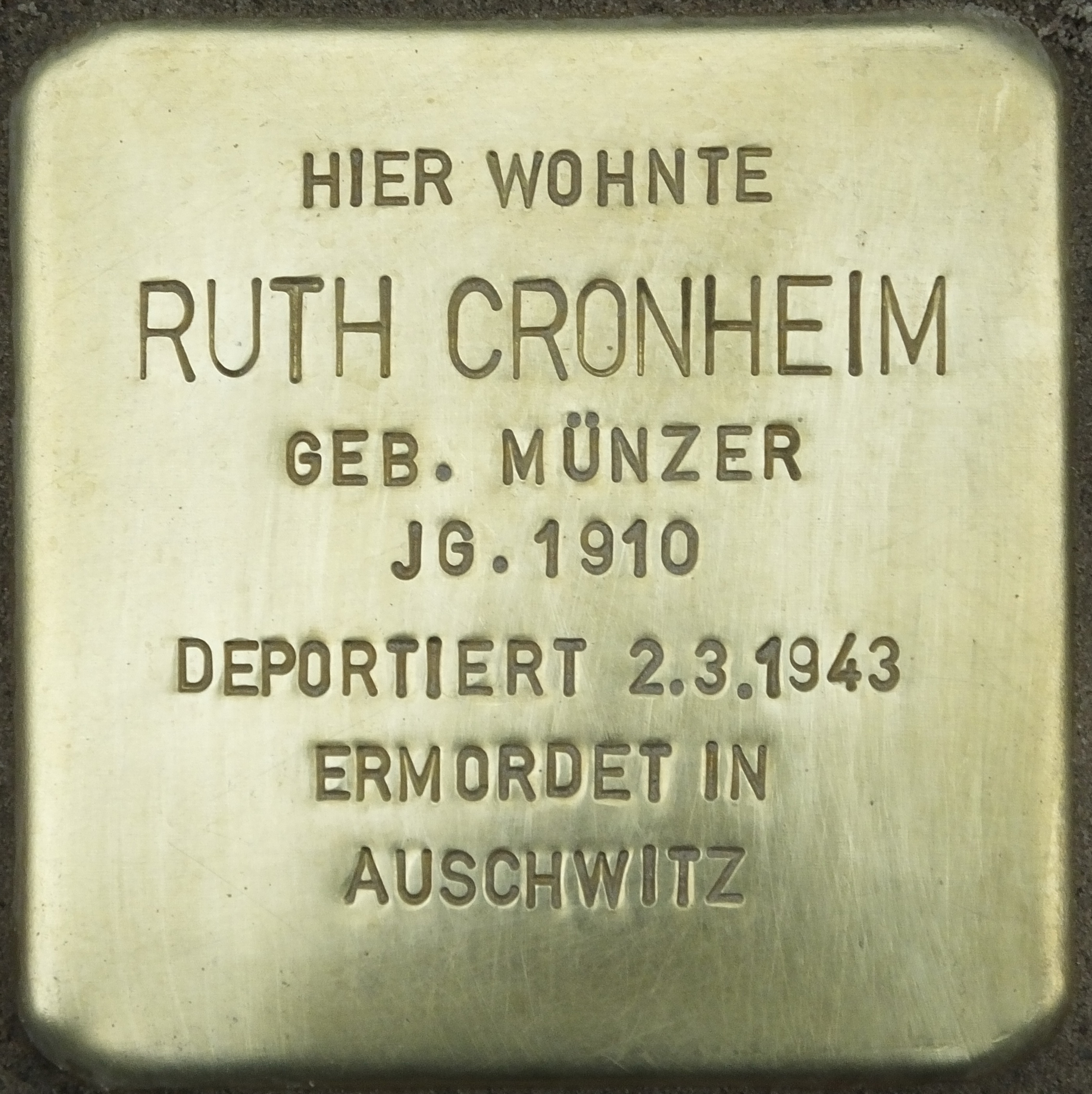 Das Schicksal der Frau Meta Cronheim hat schon fast tragische, aber auch erfreuliche Bezüge. Sie war die Mutter von Alfred Cronheim, die Schwiegermutter von Ruth Cronheim und die Großmutter der Enkelkinder. Meta Cronheim wurde als Meta Baum am 7. Januar 1877 geboren. Ihr Ehemann Walter hatte einen Tuch- und Seidenhandel in der Neuen Schönhauser Straße 3. Seine Eltern waren Abraham und Mathilda Cronheim, geborene Levinthal und wohnten in der Neuen Königstraße 68.