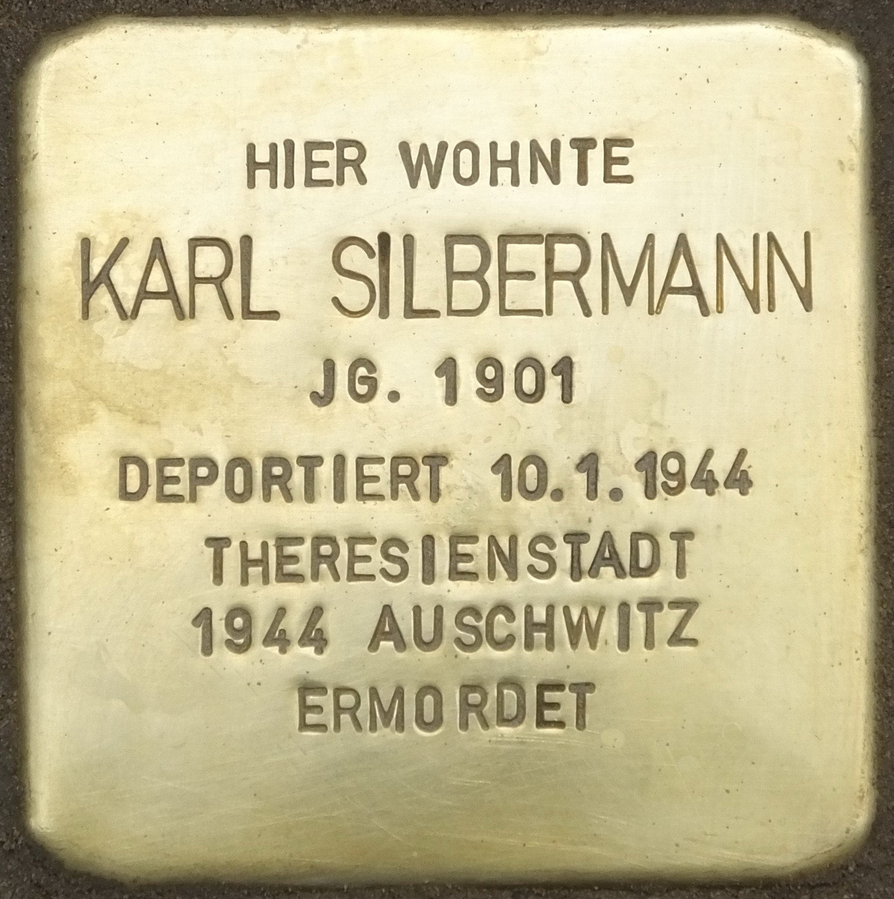 Karl Silbermann blieb allein in Berlin zurück, bis ihn die Gestapo am 10. Januar 1944 abholte und mit dem Transport I/105 in das Konzentrationslager Theresienstadt verschleppte. Zynischerweise wurde dieser Transport mit dem Zusatz „Wohnsitzverlegung von nicht mehr bestehenden privilegierten Mischehen“ versehen. Am 29. September 1944 verließ ein Zug mit 1500 Deportierten Theresienstadt, unter ihnen Karl Silbermann, in Richtung Auschwitz. Dort im Vernichtungslager angekommen, wurden fast alle sofort ermordet.