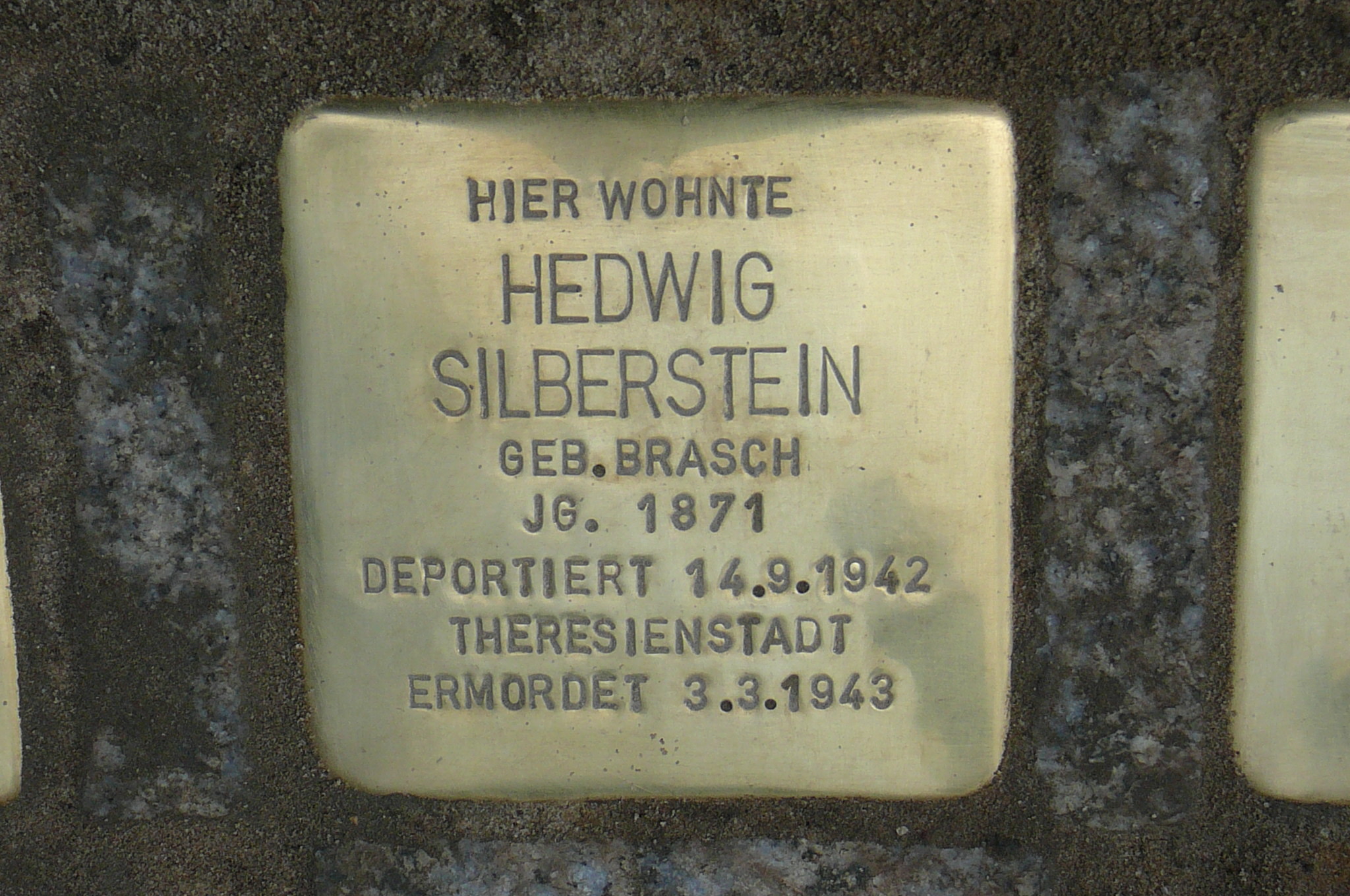Gabriele Rosenhain wurde am 9. Januar 1865 in Katzenblick (Ostpreußen) geboren. Sie ist am 17. März 1943 ins Ghetto Theresienstadt deportiert und dort am 2. März gestorben. Die Leiche wurde vier Tage danach „eingeäschert“, wie es im Toten-Begleitschein aus Theresienstadt heißt. Vermerkt wurde auf diesem erhaltenen Dokument