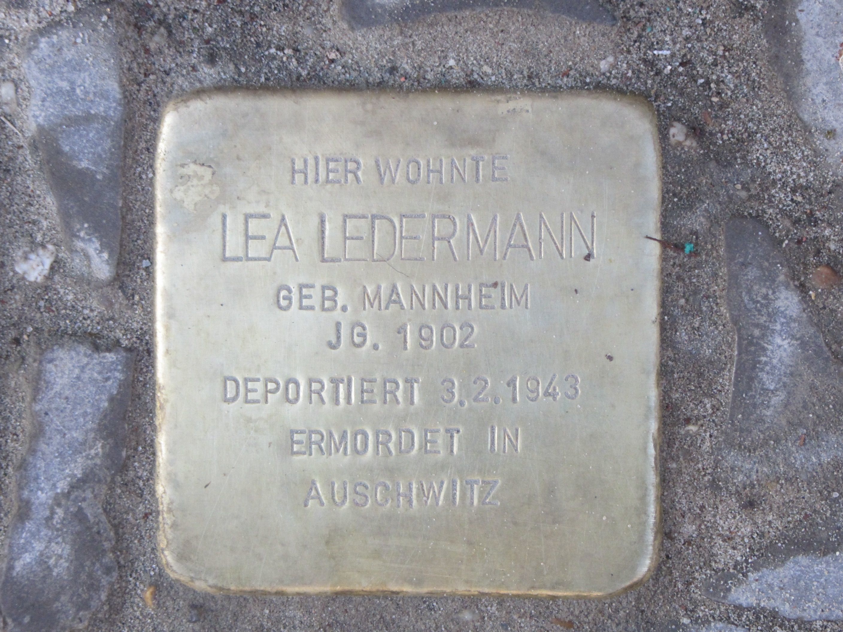 Zwei Tage danach, am 29.11.2012, war in der Wochenzeitung DIE ZEIT eine Reportage zu lesen, die mit den Worten begann: „Die beiden Steine, die Gunter Demnig in der Dahlmannstraße in Berlin verlegt, sind Georg und Lea Ledermann gewidmet. Das Ehepaar wurde 1943 nach Auschwitz deportiert. Demnig, mit beitkrempigem Hut, kniet auf dem Gehweg und setzt die kleinen Messingblöcke in den Boden.“ Darüber hat sich Gerd Ledermann gefreut.