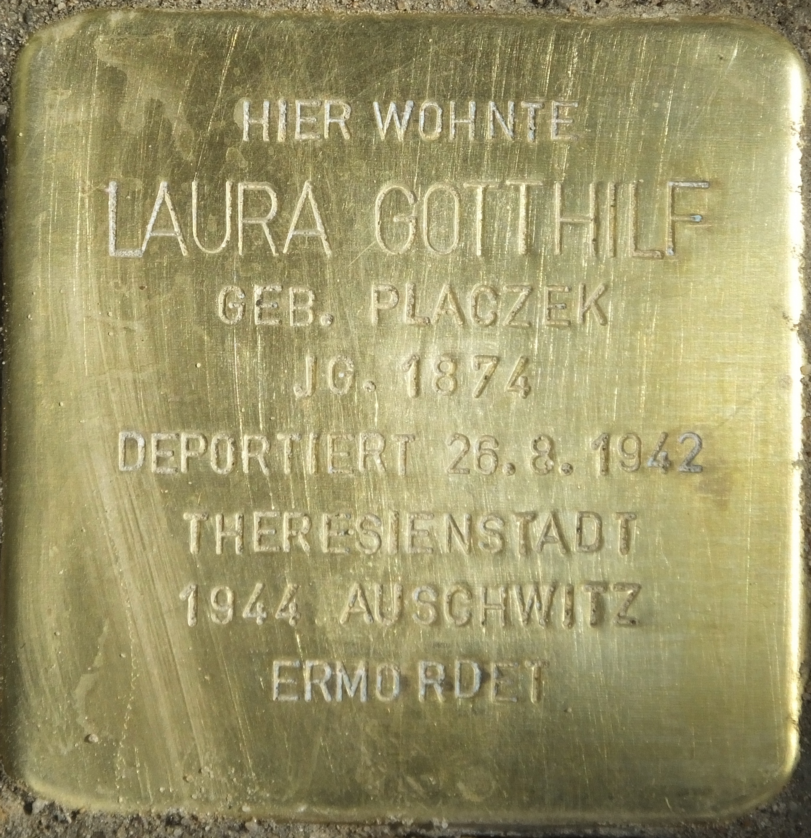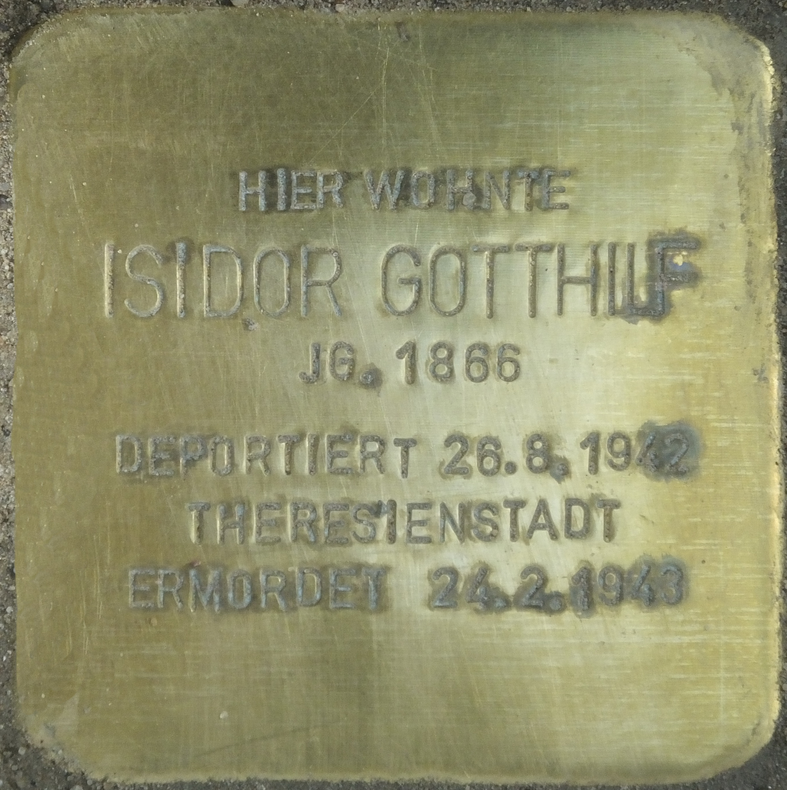 Isidor und Laura Gotthilf wurden am 26. August 1942 am Anhalter Bahnhof in einen Zug, von den Nazibehörden als „51. Alterstransport“ registriert, gesetzt, der sie mit 100 anderen Juden nach Theresienstadt brachte. Isidor Gotthilf starb dort am 24. Februar 1943, der Totenschein) verzeichnet „Enteritis/Darmkatarrh“ als Ursache – eine Umschreibung für Unterernährung und hygienische Missstände. Laura Gotthilf wurde am 16. Mai 1944 aus Theresienstadt nach Auschwitz weitertransportiert (http://www.holocaust.cz/databaze-obeti/obet/12700-laura-gotthilf/) und dort ermordet, der Todestag ist unbekannt.