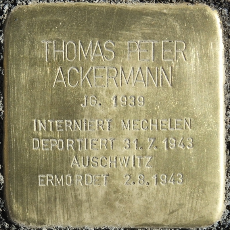 Diese Stolpersteine wurden auf Wunsch von Nicholas Rose (Großbritannien), Großneffe von Hans Ackermann, am 23.3.2017 verlegt. Nicholas Rose mit Familie, seine Mutter (91) und sein Bruder mit Familie (alle aus London) waren anwesend.