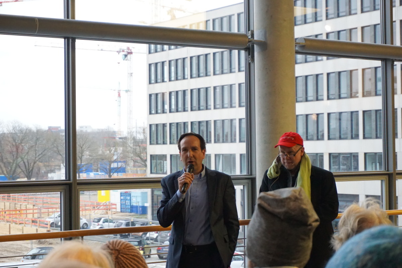 Demnächst wird mit der Bodensanierung gestartet. Ab März soll die Aushebung der Baugrube beginnen. Der Rohbau wird mit einem Beton realisiert, der so leicht ist, dass man keine weitere Dämmung braucht. Die Wände werden 60 cm dick sein. Großen Wert wird in dem Entwurf auf das Foyer und die Treppenhäuser gelegt.
