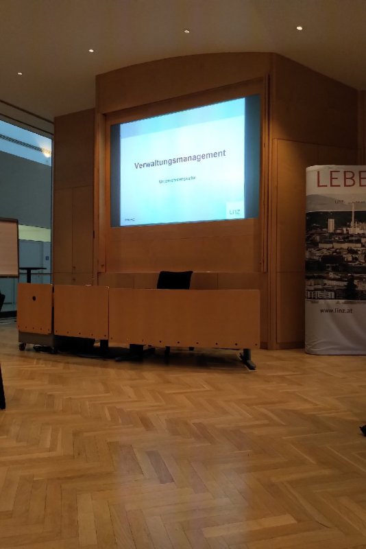 Begleiten werde ich hier vornehmlich den Teil Personalauswahl und Personalentwicklung. Schon erste Zahlen deuten darauf hin, dass wir ähnlich aufgestellt sind: Linz hat 206.000 Einwohner und 1.450 Vollzeitäquivalente (heißt hier tatsächlich auch so), die direkt beim Magistrat beschäftigt sind. Darüber hinaus gibt es noch 1.000 VZÄ, die in ausgegliederten Bereichen arbeiten (zum Beispiel Kitas) – kennen wir mit den KiTa-Eigenbetrieben auch in der Berliner Verwaltung. Im Gespräch ergeben sich dann von Zeit zu Zeit Nachfragen, die dann doch Besonderheiten hervorbringen. “Eine Kollegin kann ich Ihnen heute noch nicht vorstellen, sie befindet sich in Altersteilzeit.” Ach so, schade, antworte ich und mich interessiert sogleich, ob denn in der Freistellungsphase auch nicht besetzt werden kann. Dieses Modell kennt man hier nicht; bei 80-90 Prozent der Bezüge kann man bis auf 60 Prozent der Arbeitszeit heruntergehen, und die freiwerdenden VZÄ können sofort besetzt werden.