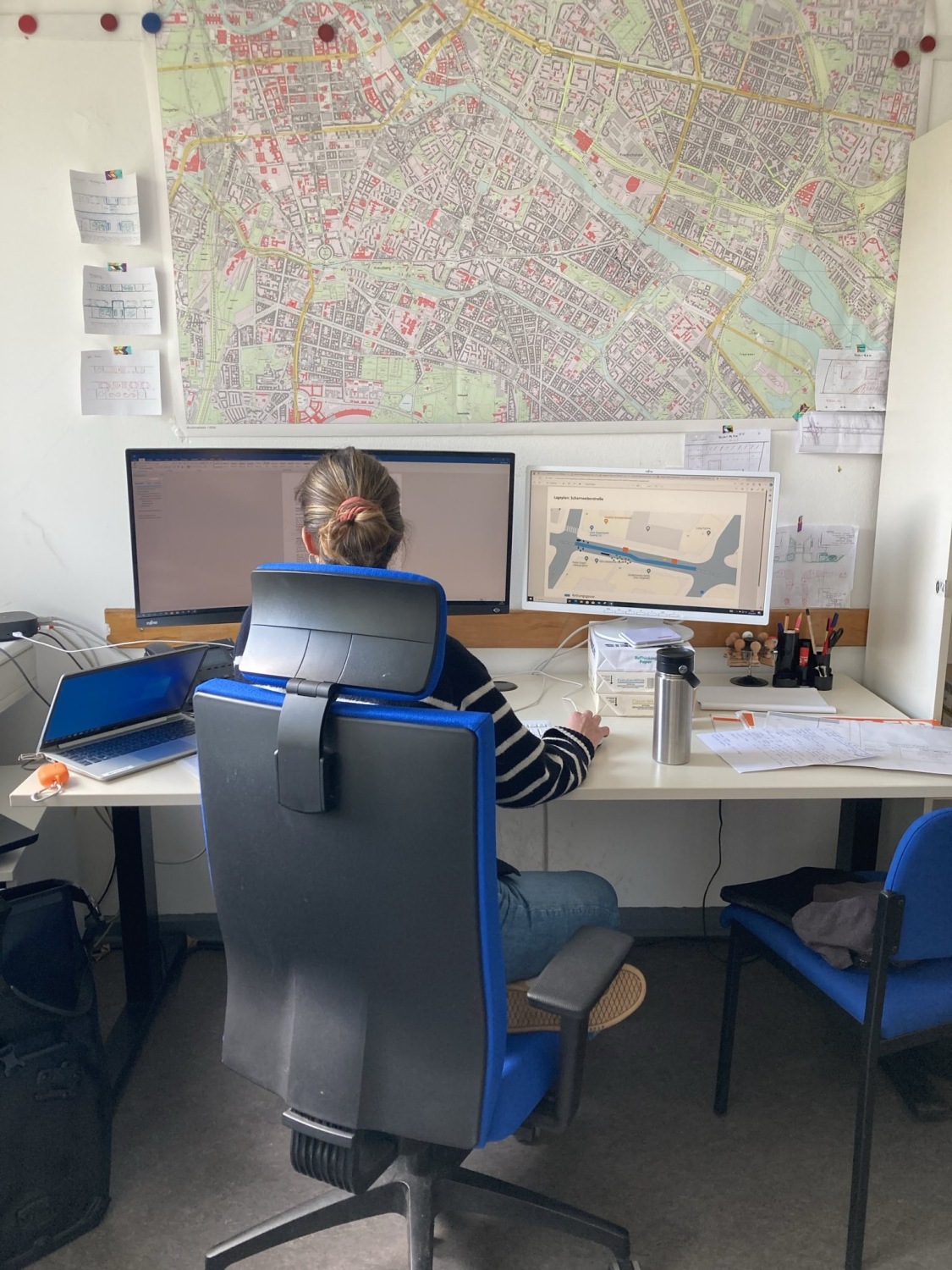 Während unserer Hospitation haben wir hauptsächlich an einem Projekt mitgearbeitet und konnten dabei viel über die Prozesse im Bezirk lernen, die sich sicherlich auch auf andere Bereiche übertragen lassen. Konkret ging es beim Straßen- und Grünflächenamt um die Gestaltung von Schulzonen, wobei wir unsere Erfahrungen und Expertise aus NGO und Forschung einbringen konnten. Bei einer “Schulzone“ wird die Straße vor der Schule umgestaltet. Die Idee ist, dass Kinder dadurch sicher zur Schule gelangen können und gleichzeitig mehr Aufenthaltsqualität vor den Schulen entsteht, sodass die Schüler*innen sich dort frei bewegen, die Flächen mitgestalten und für sich nutzen können. Dieser Prozess begann lange vor unserer Zeit mit einer systematischen Erfassung aller Schulen im Rahmen einer räumlich-quantitativen Untersuchung, gefolgt von einer qualitativen Analyse der Gegebenheiten vor Ort und einer anschließenden Priorisierung. Die Schulzonen sind auch Teil des Konzepts Xhain beruhigt sich.