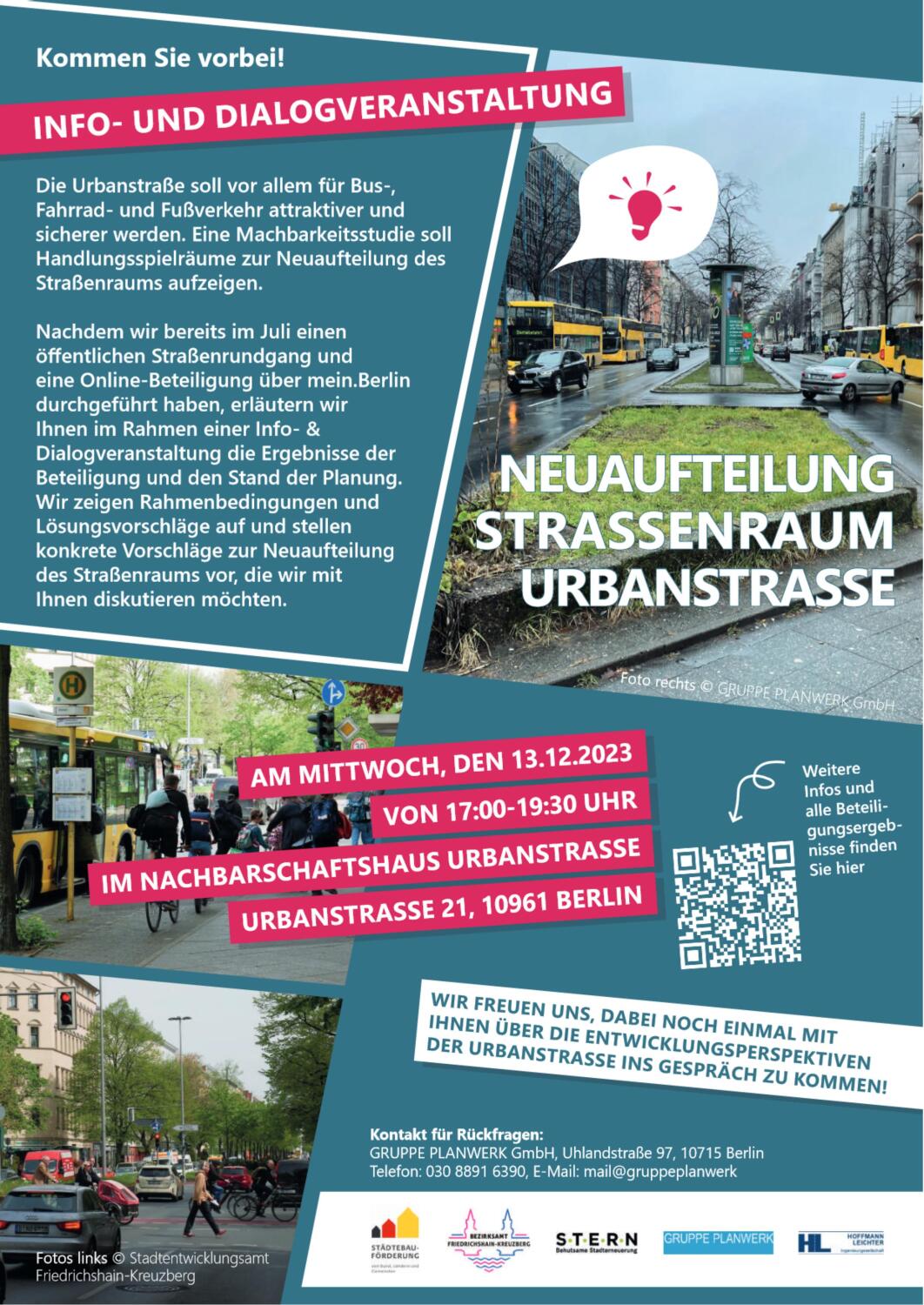 Wir freuen uns, dabei noch einmal mit Ihnen über die Entwicklungsperspektiven der Urbanstraße ins Gespräch zu kommen!