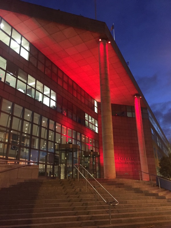 Ich bin während der vier Wochen in der Personalabteilung (Human Resources) des Dublin City Council (der Stadtverwaltung) eingesetzt. Das Gebäude ist ein großer Bau aus Sichtbeton mit vielen Fenstern. Es befindet sich direkt am Fluss Liffey, der mitten durch die Stadt fließt und erinnert mich eher an die repräsentativen Gebäude des Bundestages statt an eines der Lichtenberger Gebäude. Hier melden wir uns zunächst an der Rezeption der Human Ressources Abteilung. Wir nehmen Platz und werden darauf hin von einer Mitarbeiterin abgeholt und zu einer Einführungsveranstaltung für neue Mitarbeiter*innen gebracht an welcher wir teilnehmen dürfen. Hier sind neben uns noch etwa 10 andere Menschen die teilweise bereits seit einigen Monaten beim Dublin City Council (DCC) arbeiten. Mir fällt direkt die lockere Atmosphäre auf: obwohl die Menschen sich nicht wirklich kennen, kommen Sie schnell ins Gespräch. Bei dieser Veranstaltung geht es um das Kennenlernen des DCC, aber auch um das
