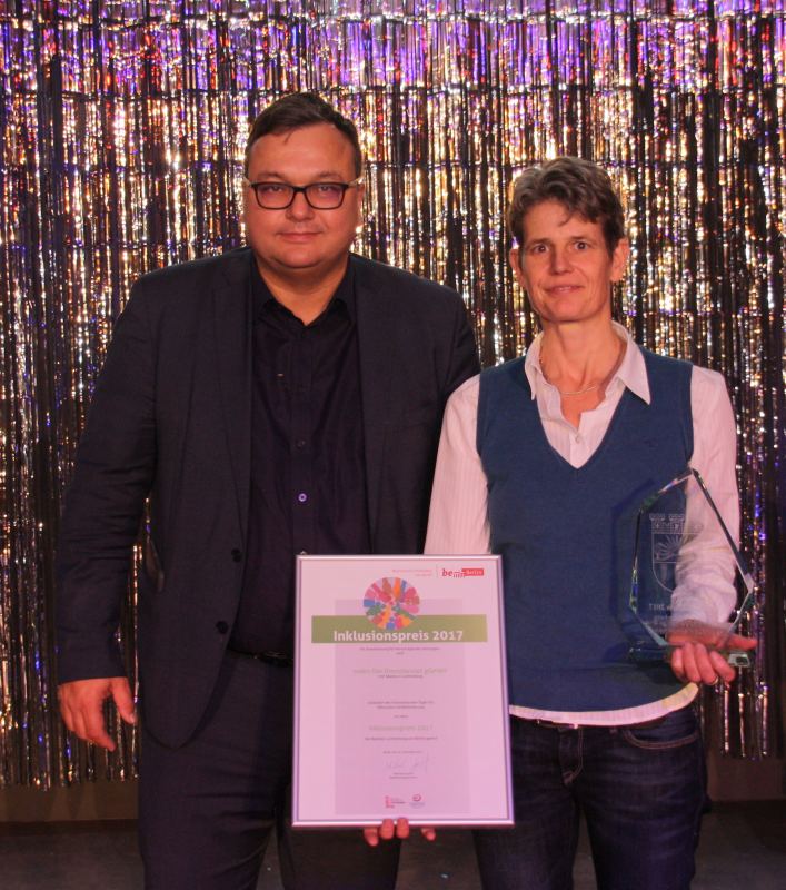 Dr. med Björn Kruse (Chefarzt des BHZ): „Wir sind sehr dankbar und freuen uns besonders, dass unsere Arbeit mit dem Lichtenberger Inklusionspreis gewürdigt wird. Die erfolgreiche Verwirklichung des Medizinischen Zentrums für Erwachsene mit Behinderung am KEH stellt für uns einen der wichtigsten Meilensteine dar. Dieser Preis ist für uns alle ein enormer Ansporn, die Inklusive Medizin weiter voranzutreiben und fest im Gesundheitssystem zu etablieren.“