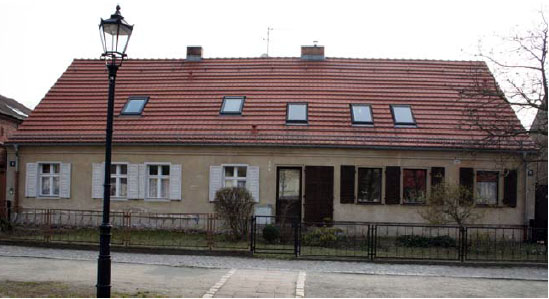 Bei dem um 1300 erstmals erwähnten Dorf Marzahn handelt es sich um ein gut erhaltenes Straßenangerdorf. Die ursprünglich in Richtung Landsberg führende Dorfstraße weitet sich in Marzahn um einen zentralen spindelförmigern Anger auf, auf dem sich die wichtigen gemeinschaftlichen Einrichtungen wie Kirche, Friedhof, Schule und Schmiede (heute nicht mehr existent) befanden. Die Gehöfte gruppieren sich in Drei- und Vierseithöfen entlang der Straße um den Anger. Im rückwärtigen Bereich bilden die Bauerngärten den typischen Grüngürtel um das Dorf, der noch weitgehend erhalten ist. Der Friedhof wurde 1893 an das östliche Ende des Dorfes verlegt. Er ist inzwischen aufgelassen.