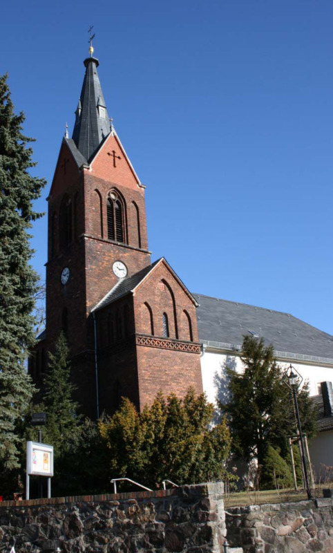 Evangelische Dorfkirche mit Einfriedung – Denkmalnummer 09045300, 14.- 20. Jahrhundert (Baudenkmal und Bestandteil des Ensembles Alt-Kaulsdorf) Um die Mitte des 13. Jahrhunderts wurde das erste Kirchengebäude auf dem Anger von Kaulsdorf errichtet. Dieses Gebäude hatte bis 1716 bestand und wurde dann im barocken Stil umgebaut und erweitert. Im Jahr 1876 erfolgte die nächste große bauliche Veränderung mit der Errichtung eines repräsentativen von einer Turmanlage überhöhten Westeinganges. In diesem Zusammenhang wurden kurze Zeit später auch die Außenanlagen neu gestaltet und die Hochzeitspforte errichtet. 1945 verlor die Kirche bei Kampfhandlungen im 2. WK ihre Turmspitze und hatte rund 50 Jahre nur ein Notdach auf dem Turm. Mit den umfangreichen Sanierungsarbeiten in den Jahren 1995 – 2000 an Kirche und Hochzeitspforte, erhielt das Gebäude auch seinen Turmhelm wieder, der nun wieder weithin sichtbar ist. Im Turm wurde nach seiner Wiederherstellung ein Turmmuseum zur