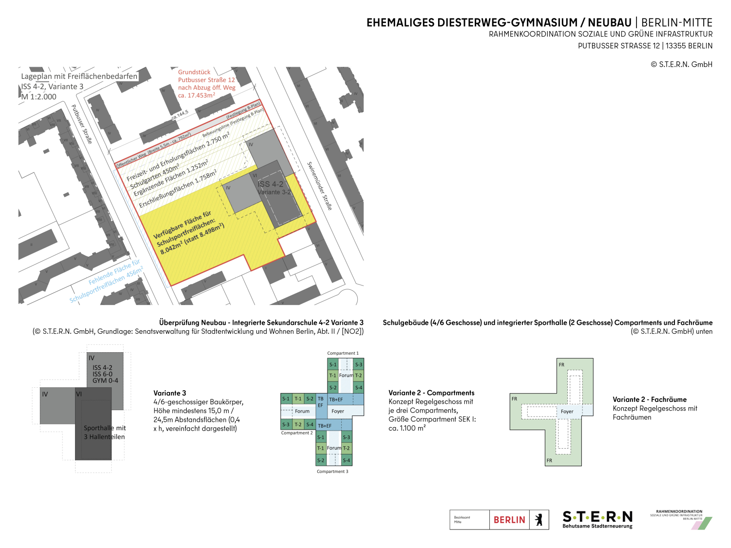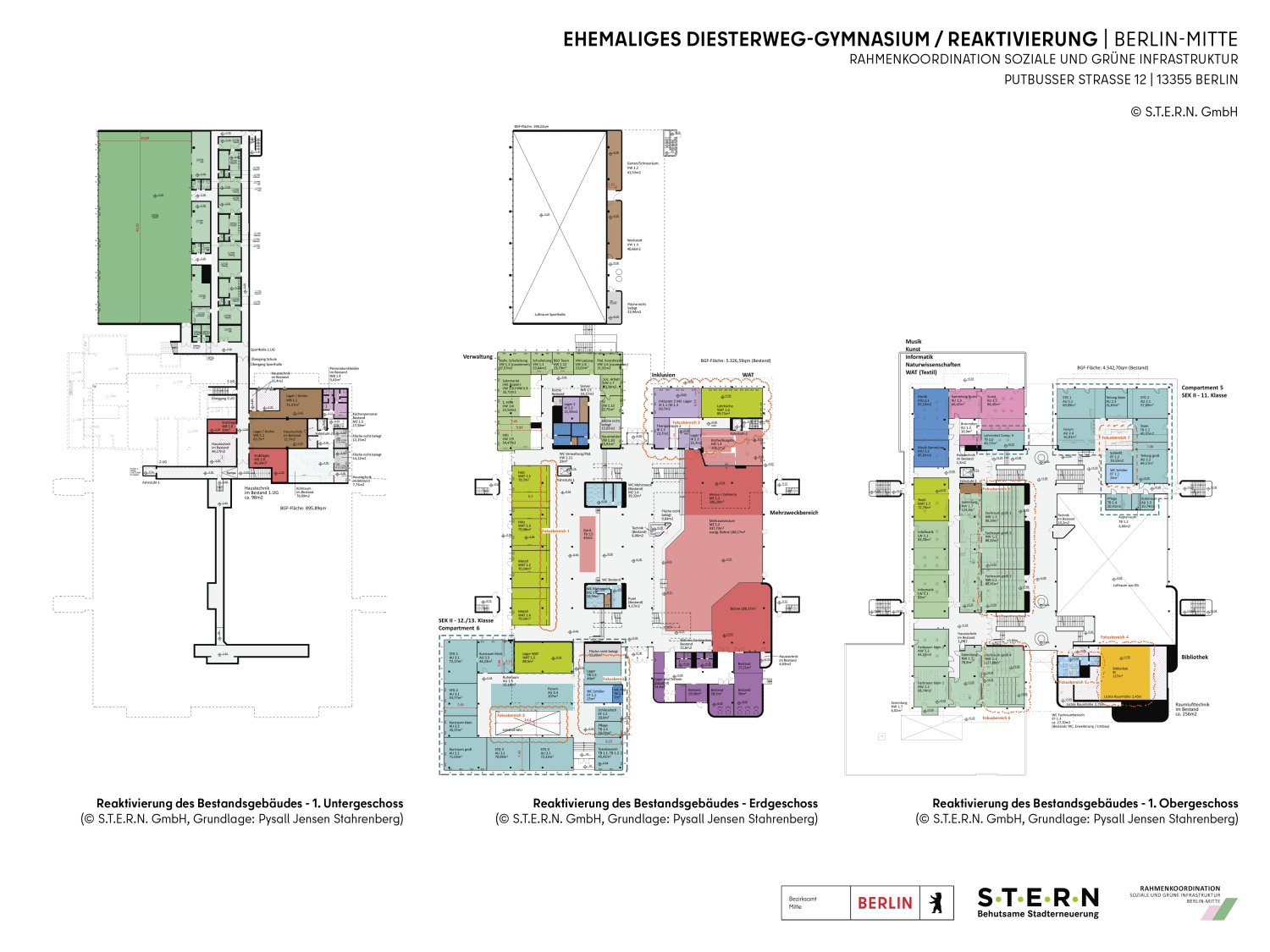 Das ehemalige Diesterweg-Gymnasium wurde 1974-76 als Oberstufen-Schulzentrum zwischen der Swinemünder und Putbusser Straße im „Sanierungsgebiet Wedding -Brunnenstraße“ errichtet. Als Pilotprojekt vereinigte es die baulichen Anforderungen an das neu eingeführte Kurssystem der gymnasialen Oberstufe und die Integration außerschulischer Bildungsangebote wie z.B. eine Bibliothek und einen großzügigen Veranstaltungssaal. Aufgrund des Rückgangs von Einwohner- und Schüler*innenzahlen steht das Gebäude seit 2011 leer.