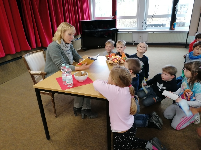 Nach der Lesung und einem lebendigen Gespräch mit der Stadträtin über den „Buchstabenfresser“ waren die Schülerinnen und Schüler so angeregt, dass die Viertklässler den Erstklässlern vorlasen. „Bereits seit 2007 unterstütze ich den Bundesweiten Vorlesetag, der jedes Jahr an die Bedeutung, die das Vorlesen für die kindliche Entwicklung hat, erinnert“, bemerkt die Stadträtin, die auch in diesem Jahr wieder etliche ehrenamtliche Vorleser für die Teilnahme gewann. Ihrem Aufruf folgten unter anderem Familie von Heinz, die Nachfahren Wilhelm und Alexander von Humboldts, Ausbildungsplatzpate Gert Pätzold, Oberschulrat a.D. Jürgen Gutheil, sowie Anne Vogler von der GSE Ingenieur-Gesellschaft mbH Saar, Enseleit und Partner und der Journalist Alexander Kulpok.