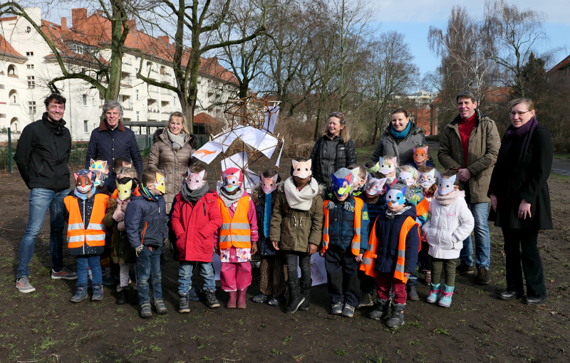 Gemeinsam mit Rüdiger Zech, dem Leiter des Straßen- und Grünflächenamtes, und vielen kleinen Füchsen aus den umliegenden Kitas weihte sie am Dienstag die Skulptur „Putzfuchs Reiner“, das Maskottchen der Kampagne, ein. Er soll nicht nur im Quartiersmanagementgebiet Auguste-Viktoria-Allee für einen sauberen Rosengarten, sondern allgemein für saubere Grünanlagen werben. Zur Eröffnung schmückten Kita-Kinder die Skulptur, die Axel Rössling gebaut hat, mit ihren selbstgemalten Bildern.