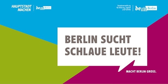 Der Berlin-Tag ist Deutschlands größte Berufs- und Informationsmesse für Schulen, Kitas und Jugendämter. Sie alle stellen sich hier als Arbeitgeber vor. Das Motto lautet: „Berlin sucht schlaue Leute!“, „Berlin sucht Dich!“ Gesucht wird engagiertes und qualifiziertes Personal, gern auch Quereinsteiger. Coronabedingt findet der Berlin-Tag in diesem Jahr erstmals digital statt.