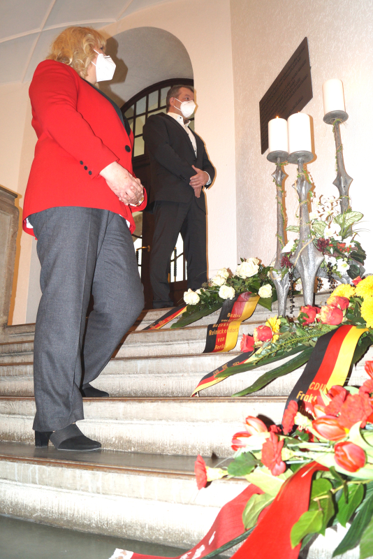 Im Namen des Bezirksamtes und der Bezirksverordnetenversammlung Reinickendorf haben Bezirksbürgermeister Frank Balzer und die BVV-Vorsteherin Kerstin Köppen (beide CDU) zum heutigen Tag des Gedenkens an die Opfer des Nationalsozialismus einen Kranz vor der Erinnerungstafel am Eingang des alten Rathauses niedergelegt.