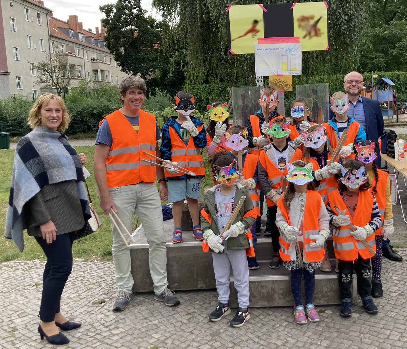 Diese Müllsammelaktion nahm auch die Stadträtin für Bauen, Bildung und Kultur, Frau Schultze-Berndt (CDU) sowie das Straßen- und Grünflächenamt Reinickendorf zum Anlass, dem Rosengarten einen Besuch abzustatten. Eine kleine Rede der Stadträtin vorab an die Kinder und an alle Akteure vor Ort gab den Startschuss für ein gemeinsames Aufräumen. Zum Schluss entstand noch ein gemeinsames Foto und es folgte eine Saftpause als Stärkung und Belohnung. Denn wer saubermacht, der tut Gutes. Und das gehört doch gewürdigt!