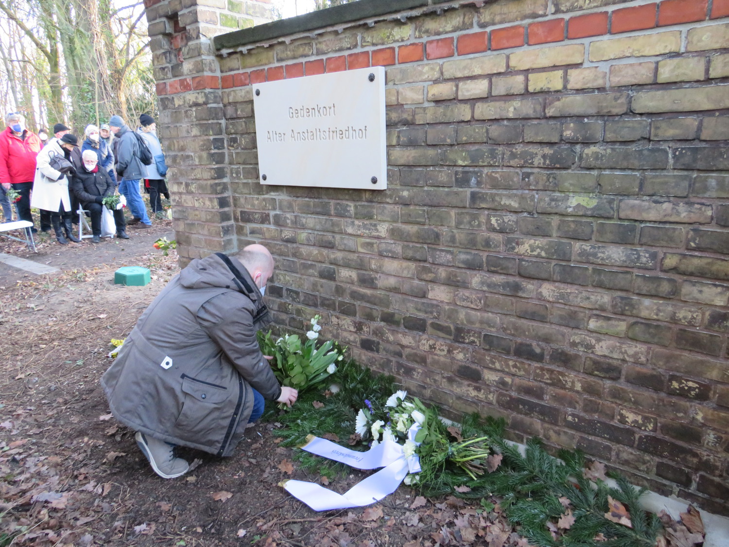 Nach langen Jahren der Vorbereitung wurde am Freitagnachmittag der Gedenkort Alter Anstaltsfriedhof auf dem Gelände der früheren Wittenauer Heilstätten – der heutigen psychiatrischen Institutsambulanz des Vivantes Klinikums – feierlich eröffnet. Der Freundeskreis „Gedenkort Alter Anstaltsfriedhof“ hatte zu einem Spaziergang vom Eingang des Geländes bis zum Friedhof mit anschließender Gedenkfeier, Gedenktafelenthüllung und Blumenniederlegung zu Ehren der Opfer des NS-Regimes eingeladen.