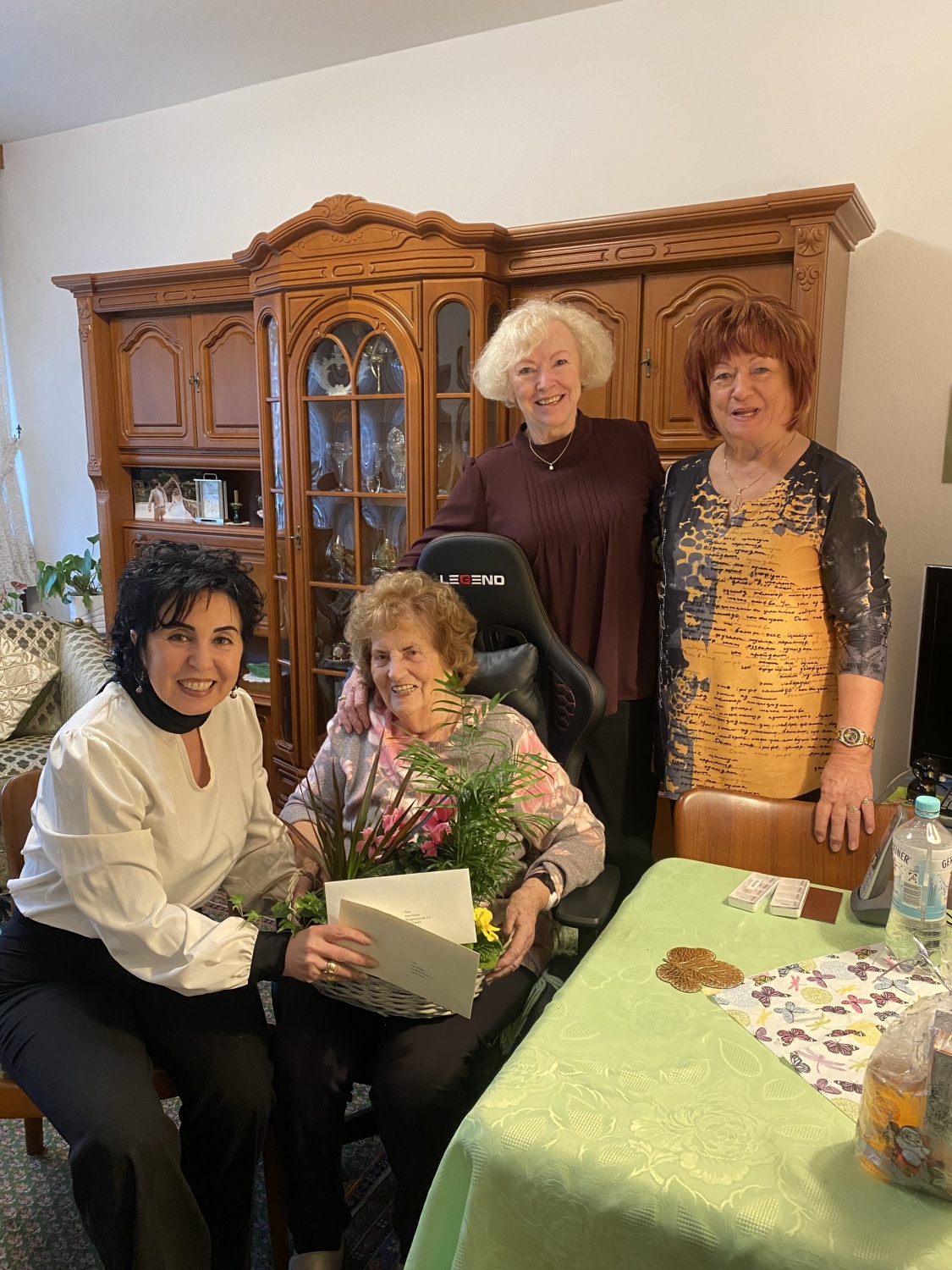 Mit sichtlichem Vergnügen und fröhlicher Anteilnahme empfing Irma Fischer die Stadträtin und eine große Gratulantenschar. Die Mutter von zwei Söhnen, Großmutter von drei Enkelkindern hat auch einen Urenkel, erfreut sich bester Gesundheit und wohnt immer noch alleine in ihrer Wohnung und versorgt sich selbst. Sie ist glücklich, allein schon im Wissen, dass sich zwei ganz liebe Nachbarinnen, mit denen sie die Hälfte ihres Lebens schon befreundet ist, liebevoll um sie kümmern.