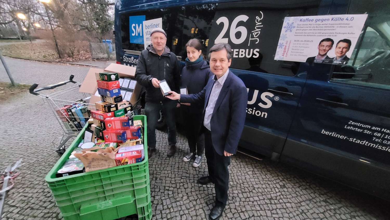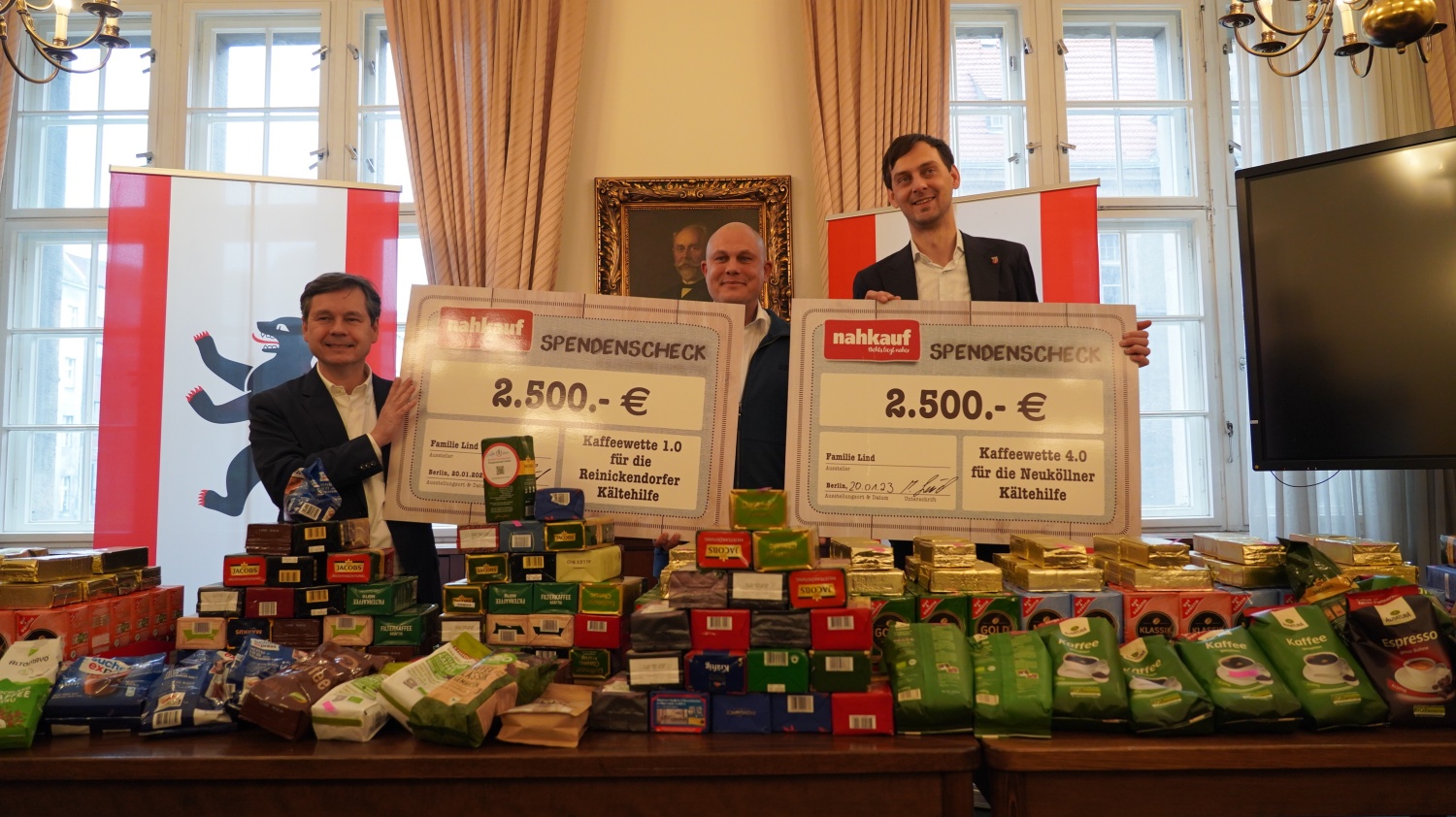 Reinickendorf hat sich gleich bei seiner ersten Teilnahme an der vom Lebensmittelhändler Michael Lind initiierten Kaffeewette sehr achtbar geschlagen und insgesamt 465 Päckchen zugunsten der Kältehilfe gesammelt. Lind zeigte sich vom Engagement seines Heimatbezirks so beeindruckt, dass er weit über seinen Wetteinsatz hinaus eine Geldspende in Höhe von 2.500 Euro drauflegte. Ausgemacht war eigentlich nur: Je 100 Packungen Kaffee die gesammelt werden, spendet Lind 200 Euro zusätzlich.