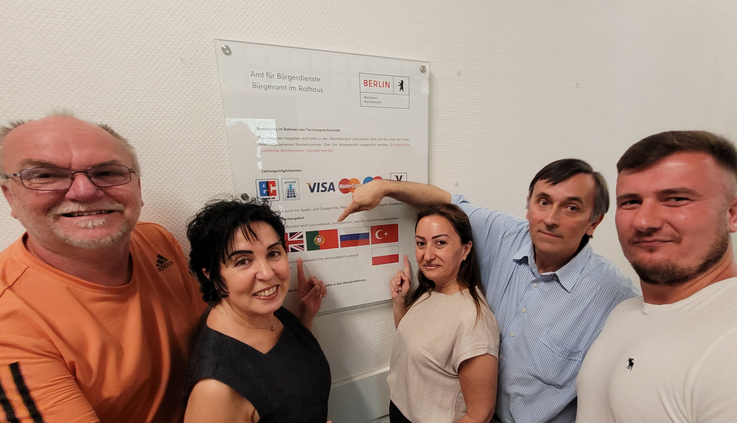 Viele Bürgerberater haben ihre wertvollen Sprachkenntnisse dabei freiwillig zur Verfügung gestellt, so dass jetzt dieser besondere Kundenservice starten kann. Im Wartebereich des Bürgeramts wird es einen Überblick über die dort gesprochenen Sprachen und an den Arbeitsplätzen der Bürgerberater wird es Informationen geben, welche Sprachen dort außer Deutsch noch gesprochen werden. Im Bürgeramt Rathaus Reinickendorf sind dies Englisch, Portugiesisch, Russisch und Türkisch.
