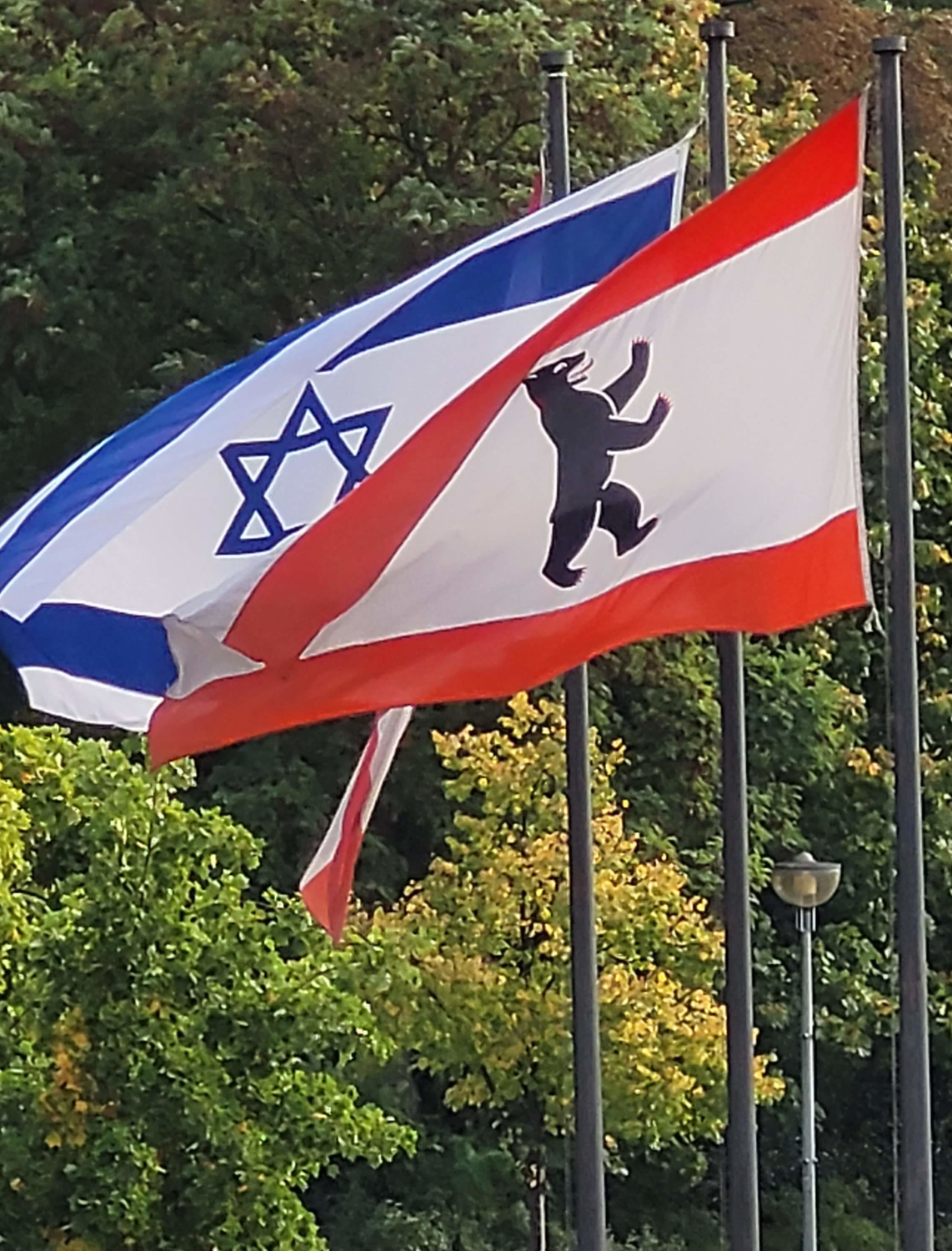 Die Bürgermeisterin betonte Israels natürliches Recht auf Selbstverteidigung. Als Zeichen der Solidarität mit den Menschen in Israel weht seit heute die blau-weiße israelische Nationalflagge vor dem Rathaus am Eichborndamm. „Wir sind in Gedanken selbstverständlich auch bei unseren nordisraelischen Städtepartnern in Kiryat Ata im Bezirk Haifa.“
