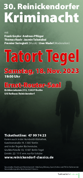 Die Reinickendorfer Kriminacht, eine feste Größe im Berliner Kulturkalender, feiert ihr 30. Jubiläum am Sonnabend, dem 18. November 2023 um 19 Uhr.