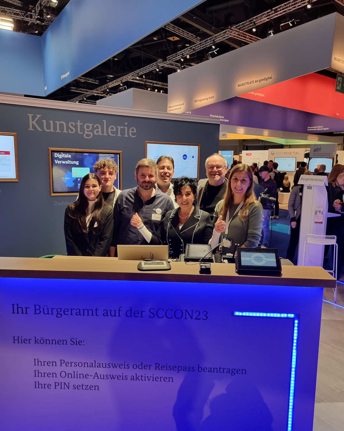 Erneut machte das mobile Bürgeramt viele Menschen auf der Messe „Smart Country Convention 2023 (SCCON 2023)“ glücklich. Die Messe ist mit 150 Ausstellern die Plattform für Zukunftsfähigkeit und Innovationsstreben der öffentlichen Verwaltung und Daseinsvorsorge. Top-Innovatoren der Digitalbranche treffen mit ihren neusten, technologischen Entwicklungen auf zentrale Entscheidungsträger aus Bund, Länder und Kommunen sowie auf renommierte Experten aus Wissenschaft und Verbänden.