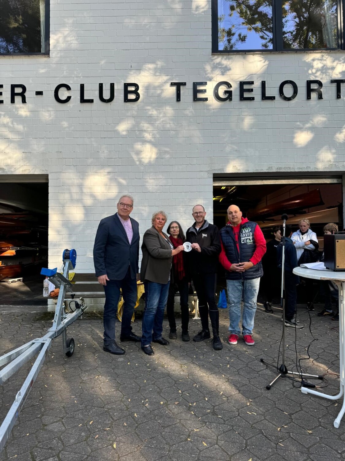 Am 28.09.2024 veranstaltete der Ruder-Club Tegelort e.V. eine Regatta und lud die Bezirksverordnetenvorsteherin Kerstin Köppen zur feierlichen Übergabe der Sondermittel-Plakette ein. Mithilfe der Sondermittel der Bezirksverordnetenversammlung (BVV) Reinickendorf in Höhe von 722,50 € konnte ein kleiner Bootstrailer für das Trainerboot gekauft werden.