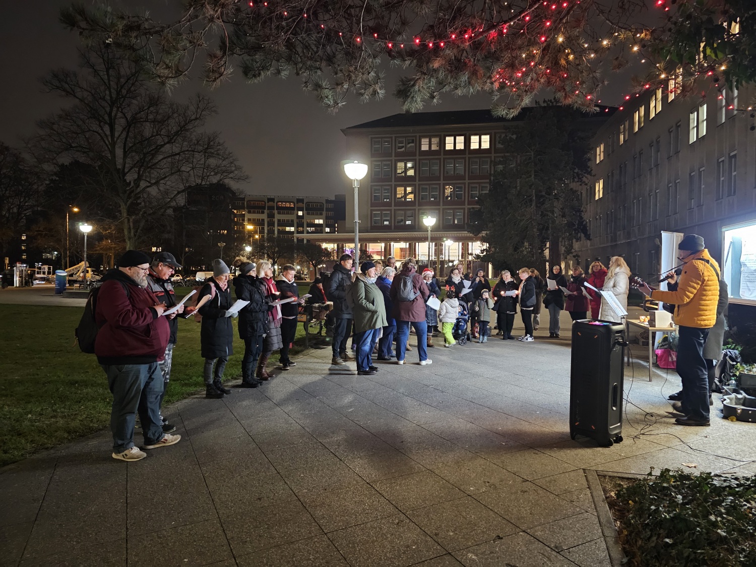 Auch in diesem Jahr kamen die Kindertagespflegepersonen und Pflegefamilien gemeinsam mit Mitarbeitenden des Jugendamtes zum traditionellen Weihnachtssingen vor dem Rathaus Reinickendorf zusammen. Bezirksbürgermeisterin Emine Demirbüken-Wegner (CDU) begrüßte die Anwesenden und bedankte sich bei den Pflegefamilien und Kindertagespflegepersonen: „Ihr Engagement und Ihre Arbeit sind so wichtig, damit auch Kinder und Jugendlichen aus schwierigen Familienverhältnissen geborgen und sicher aufwachsen können und eine wirkliche Chance auf Entwicklung ihrer Fähigkeiten haben. Ich wünsche allen eine besinnliche Weihnachtszeit.“