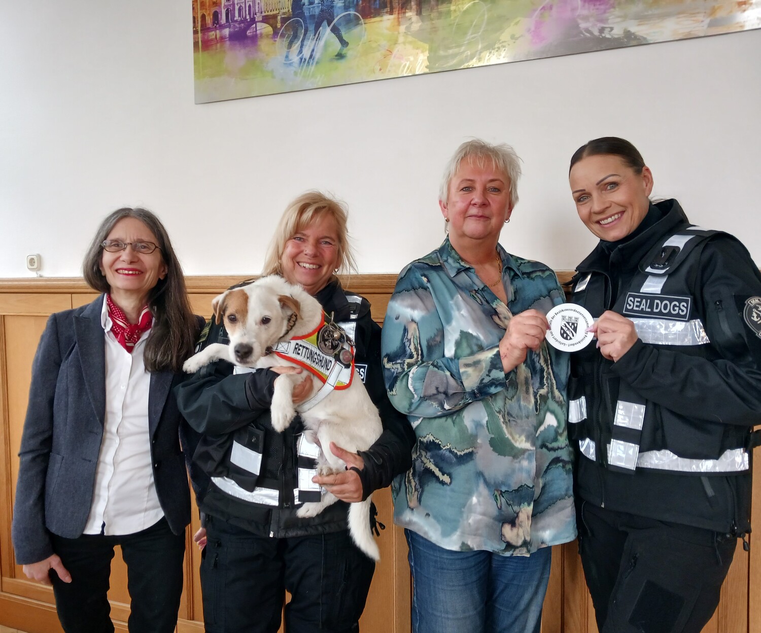Am 14. März 2025 war der Verein Rettungshunde SEAL DOGS e.V. zu Gast bei Bezirksverordnetenvorsteherin Kerstin Köppen, um die Sondermittel-Plakette der BVV Reinickendorf entgegenzunehmen.