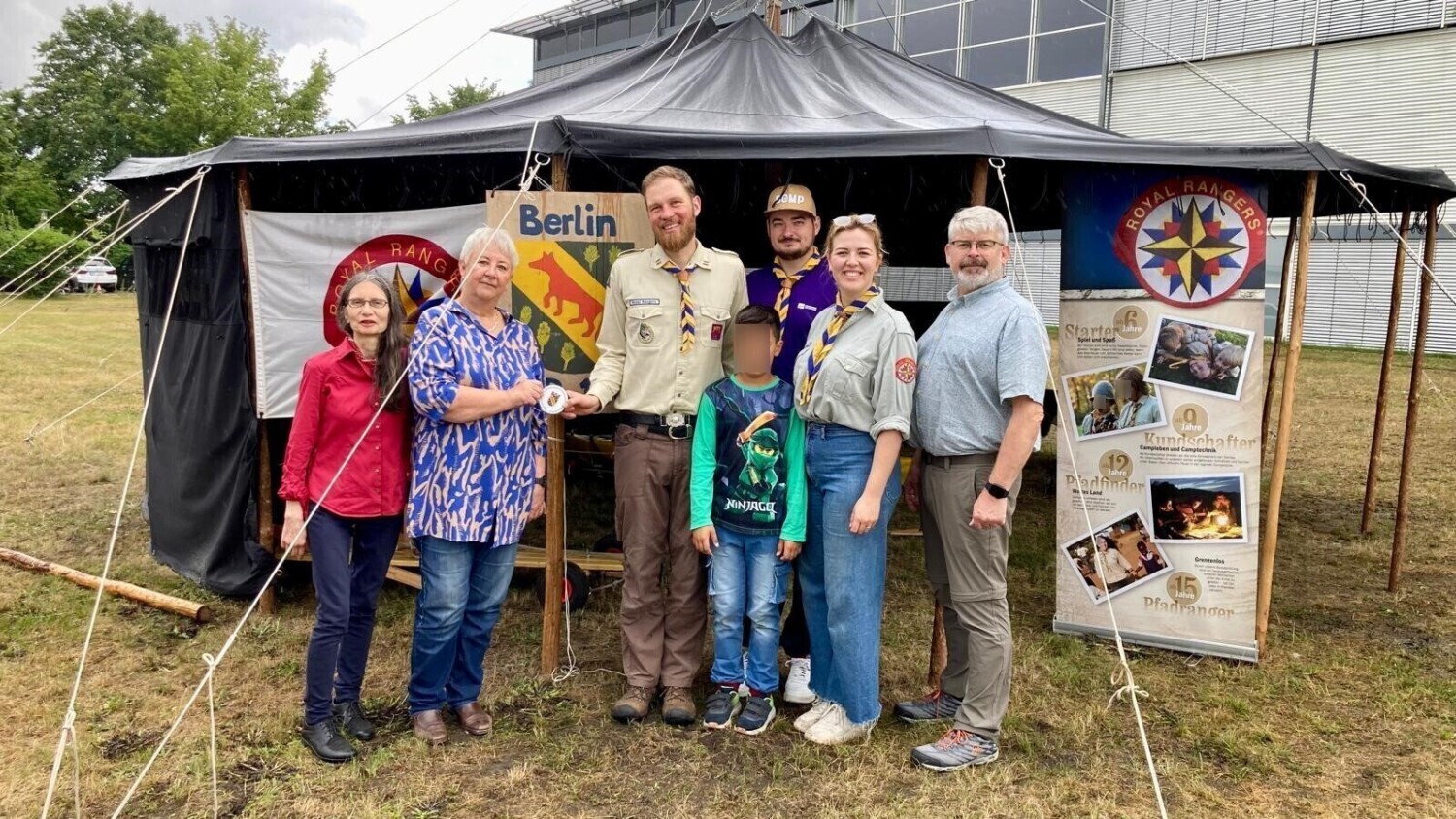Am 13.07.2025 überreichte die BVV-Vorsteherin, Frau Kerstin Köppen, eine Sondermittel-Plakette an den Royal Rangers Christliche Pfadfinder Stamm 100. Mit dieser Geste wird die Unterstützung für das engagierte Pfadfinderteam gewürdigt.