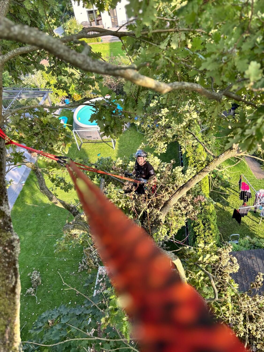 Noch immer ist das Straßen- und Grünflächenamt täglich intensiv dabei, die große Anzahl von Sturmschäden zu beheben. Das aktuelle Wetter lässt hoffen, dass die Räum- und Sicherungsarbeiten nun auf Flächen ausgeweitet werden können, die bisher aufgrund der instabilen Wetterlage nicht passierbar waren. So konnten aktuell die Seiltechniker der Polizei ihre Einsätze verstärken und lose Äste aus den Baumkronen entfernen, um etwaige unkontrollierte Abstürze zu verhindern. Sofern das Wetter stabil bleibt, werden sich die Seiltechniker weiterhin sehr engagiert und zügig um die Sicherung weiterer Flächen kümmern.