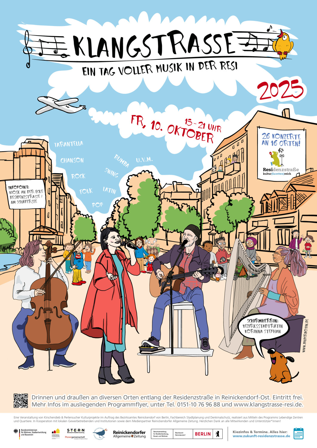 Am Freitag, den 10. Oktober 2025, wird die Residenzstraße wieder zum pulsierenden Mittelpunkt von Musik und Kultur: Das Musikfestival „Klangstraße“ kehrt zurück und bringt mit 26 Konzerten und einer Vielzahl von Musikstilen sowohl bekannte als auch neue Klänge an die Straßenecken, in Hinterhöfe, Geschäfte und sogar Friseursalons. Unter dem Motto „Musik erleben, wo man sie nicht erwartet“ verwandelt sich die Residenzstraße vom Franz-Neumann-Platz bis nach Alt-Reinickendorf in ein lebendiges Fest für die Ohren.
