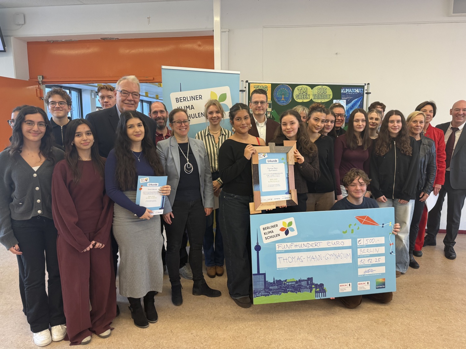 Das Reinickendorfer Thomas-Mann-Gymnasium gehört in diesem Jahr zu den Gewinnern des Wettbewerbs „Berliner Klima Schulen 2025“, initiiert vom Land Berlin und der GASAG. Die Ehrung würdigt das herausragende Engagement der Schule im Bereich Klimaschutz und nachhaltige Bildung. Anlässlich der Preisverleihung statteten der Bezirksstadtrat für Bildung, Harald Muschner, sowie die Bezirksstadträtin für Umwelt und Klimaschutz, Julia Schrod-Thiel (beide CDU), der Schule einen Besuch ab, um die Arbeit der Schülerinnen und Schüler persönlich zu würdigen.