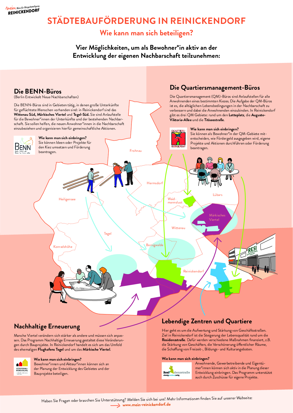 Im Bezirk Reinickendorf werden Gebiete im Rahmen folgender Programme gefördert, gestärkt und entwickelt: