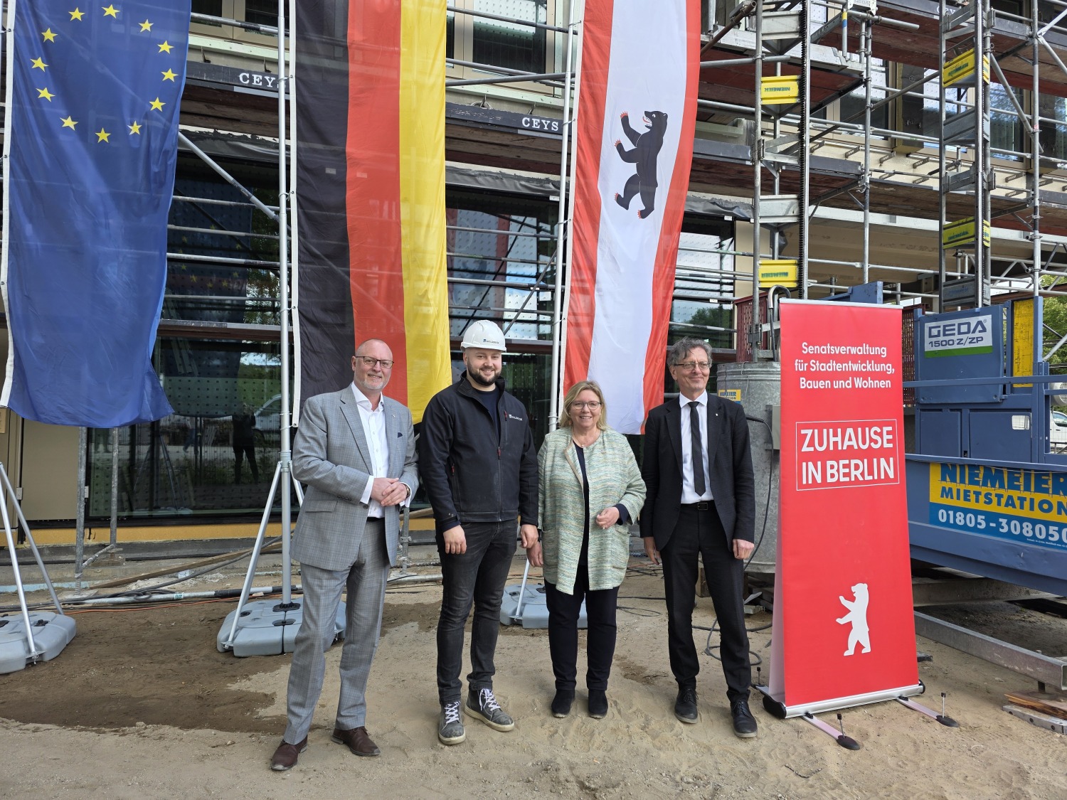 „Die Berliner Schulbauoffensive nimmt weiter Fahrt auf. Das heutige Richtfest markiert bereits den siebten Standort aus dem Typenprogramm für drei- beziehungsweise vierzügige Grundschulen im Rahmen der Berliner Schulbauoffensive. Der hohe Vorfertigungsgrad und die modulare Bauweise ermöglichen eine zügige, wirtschaftliche und nachhaltige Realisierung eines dringend benötigten Schulgebäudes. Dabei entstehen attraktive Lernräume, eine neue Sporthalle und ein vielseitig gestalteter Schulhof. Hier werden die Kinder mit viel Lernfreude und Raum für Sport und Bewegung ihre Schullaufbahn starten können.“