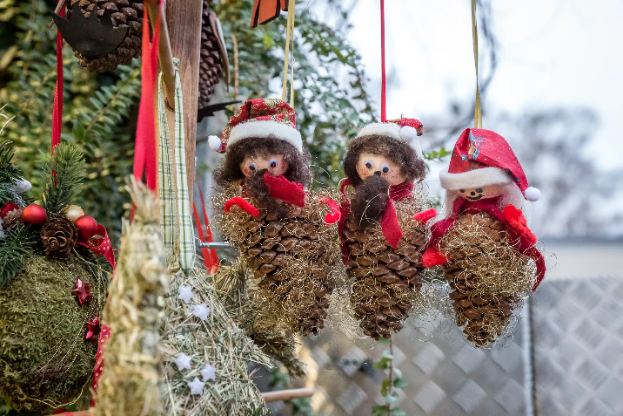 An weihnachtlich dekorierten Marktständen im Garten bieten verschiedene Kunsthandwerkerinnen und Kunsthandwerker ihre Produkte für Sie an. Hier finden Sie garantiert das eine oder andere liebevoll gemachte Präsent.