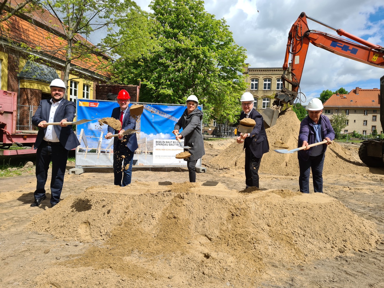 Die Christoph-Földerich-Grundschule bekommt eine neue Sporthalle. Mit einem symbolischen ersten Spatenstich haben Spandaus Bezirksbürgermeister Helmut Kleebank, die Bezirksstadträte Andreas Otti und Frank Bewig sowie die kommissarische Schulleiterin Andrea Malkowski am Mittwoch den offiziellen Beginn der Baumaßnahme eingeläutet.