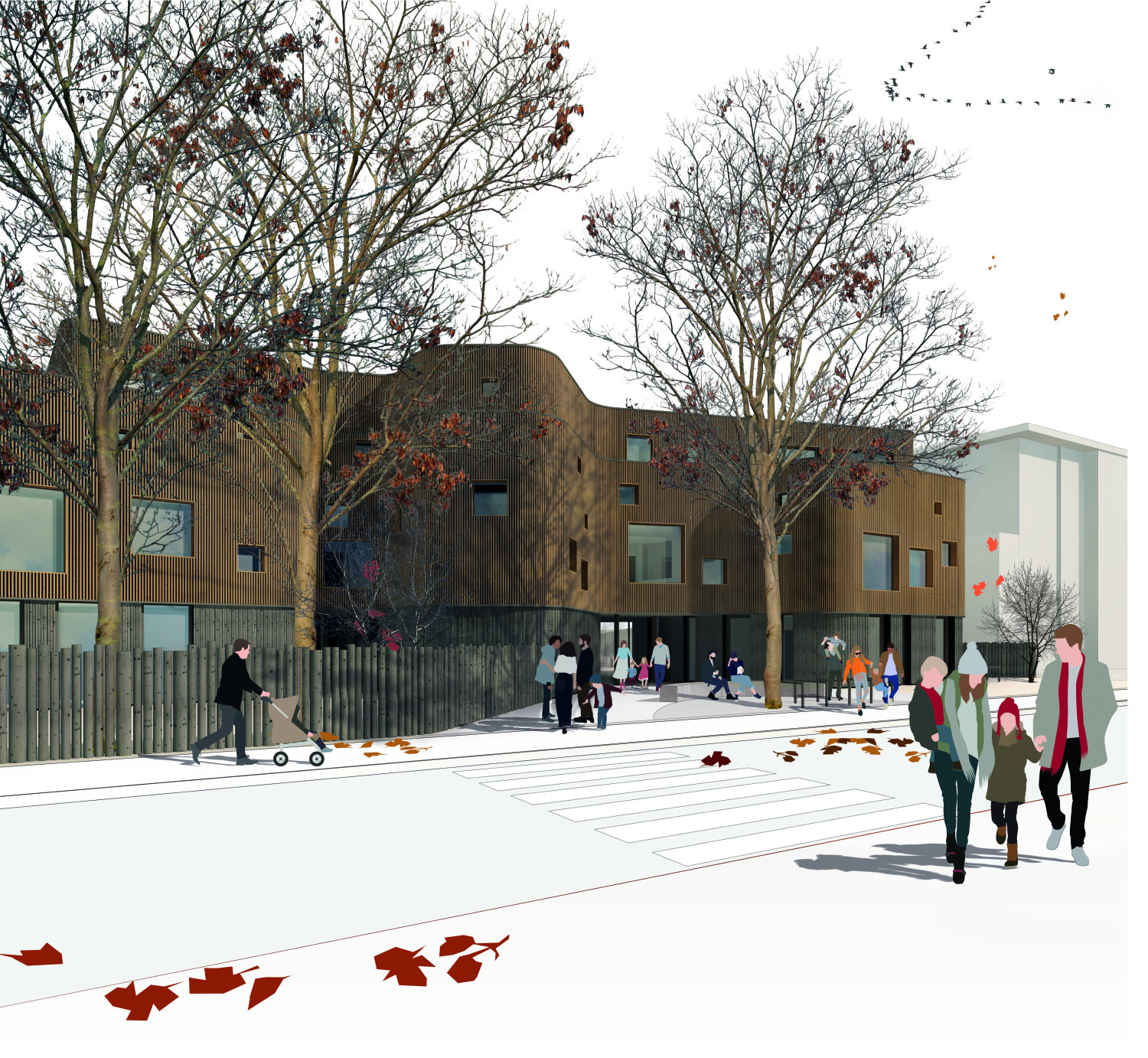 In seiner Beurteilung hebt das Preisgericht hervor: „Der organische Baukörper in Holzbauweise unterstreicht mit seiner Positionierung selbstbewusst seine Zweckbestimmung als Kindertagesstätte zwischen Wohngebäuden und Gartenkolonie und ermöglicht eine optimale Ausnutzung des Geländes unter Einbeziehung der Bestandsbäume.“ Zudem betont die Jury, dass durch die gelungene Komposition von Räumen und Verkehrswegen abwechslungsreiche und anregende räumliche Situationen entstehen, die erlebnisreiche, altersgerechte Bewegung der Kinder im Gebäude ermöglichen werden.