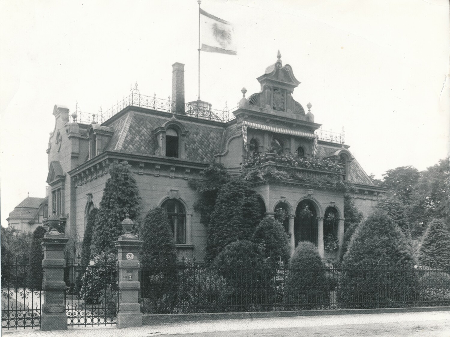 Als das älteste Gebäude innerhalb der westlichen Randbebauung des Teltower Damms reicht die Geschichte der Villa bis ins 19. Jahrhundert zurück. Im Jahr 1892 wurde das Haus als Wohngebäude für die Bauherrin Sidonie Scharfe errichtet. Hier treffen verschiedene Baustile aufeinander: Während der Eingang eher an eine italienische Loggia erinnert, ist das Dach im französischen Stil gehalten und der Giebelaufbau weist barocke Elemente auf.