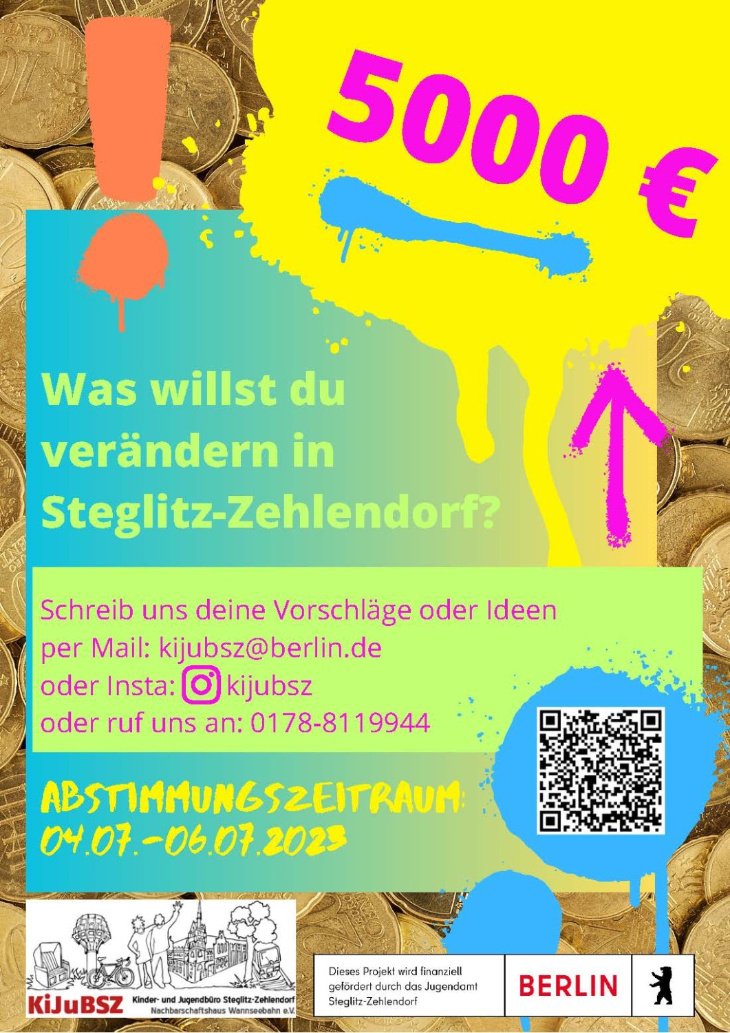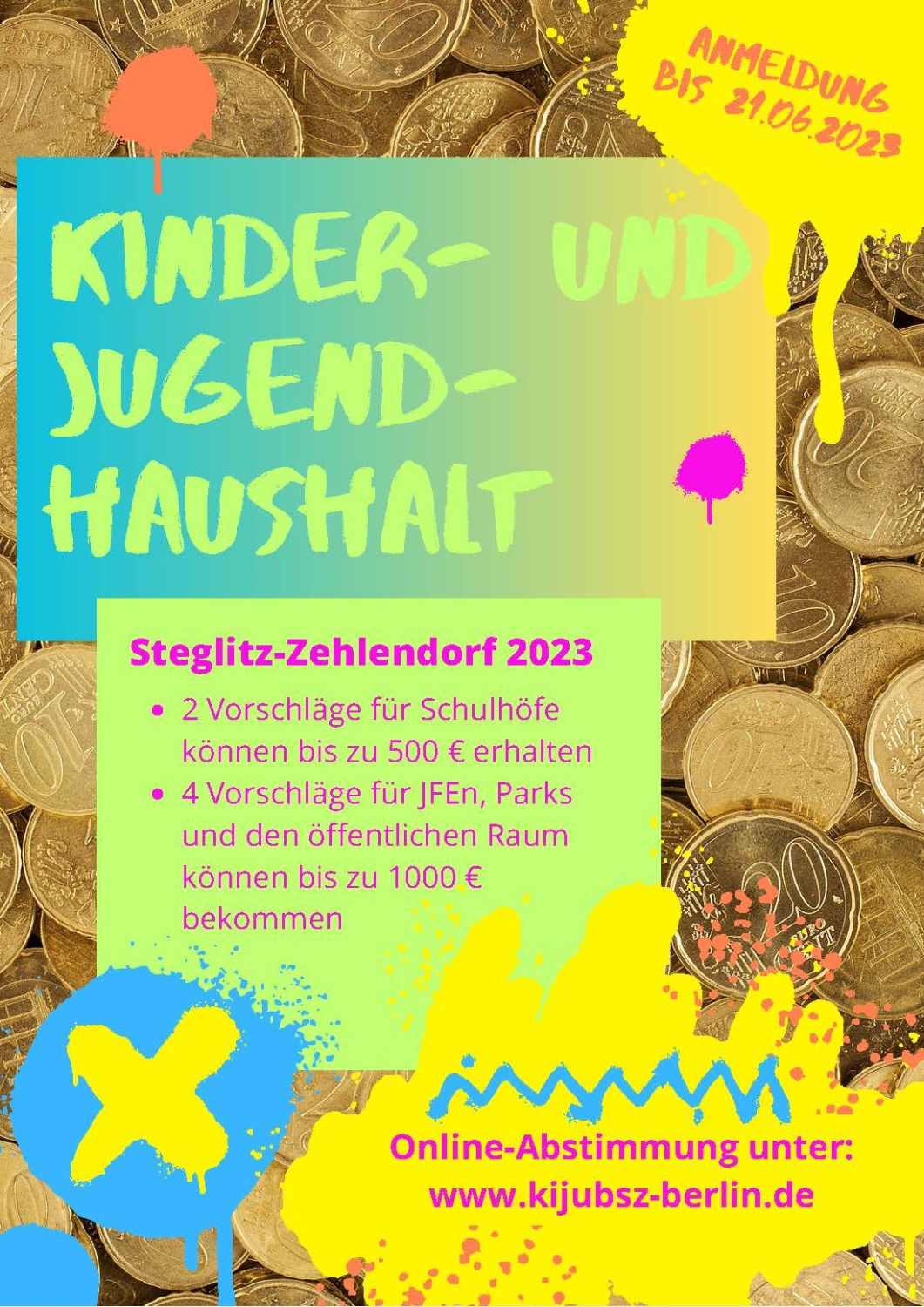 Ab sofort können wieder alle Kinder und Jugendlichen von sechs bis 21 Jahren, die eine Schule in Steglitz-Zehlendorf besuchen oder hier wohnen, ihre Vorschläge und Ideen für den Bezirk beim Kinder- und Jugendhaushalt einreichen! Insgesamt werden 5000 € vergeben.
