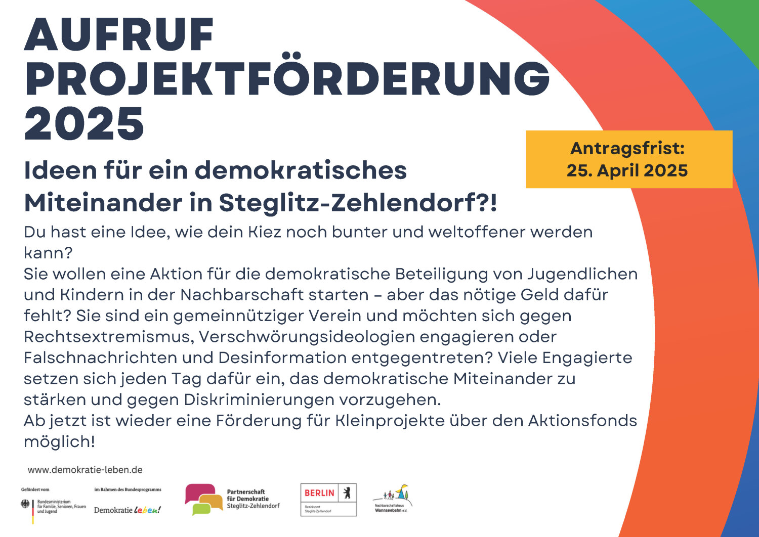 Interessierte haben bis zum 25. April 2025 die Möglichkeit, ihre Projektideen einzureichen und sich im Vorfeld beraten zu lassen. Der Aktionsfonds fördert Kleinprojekte bis zum 31.12.2025 bis maximal 5.000 €.