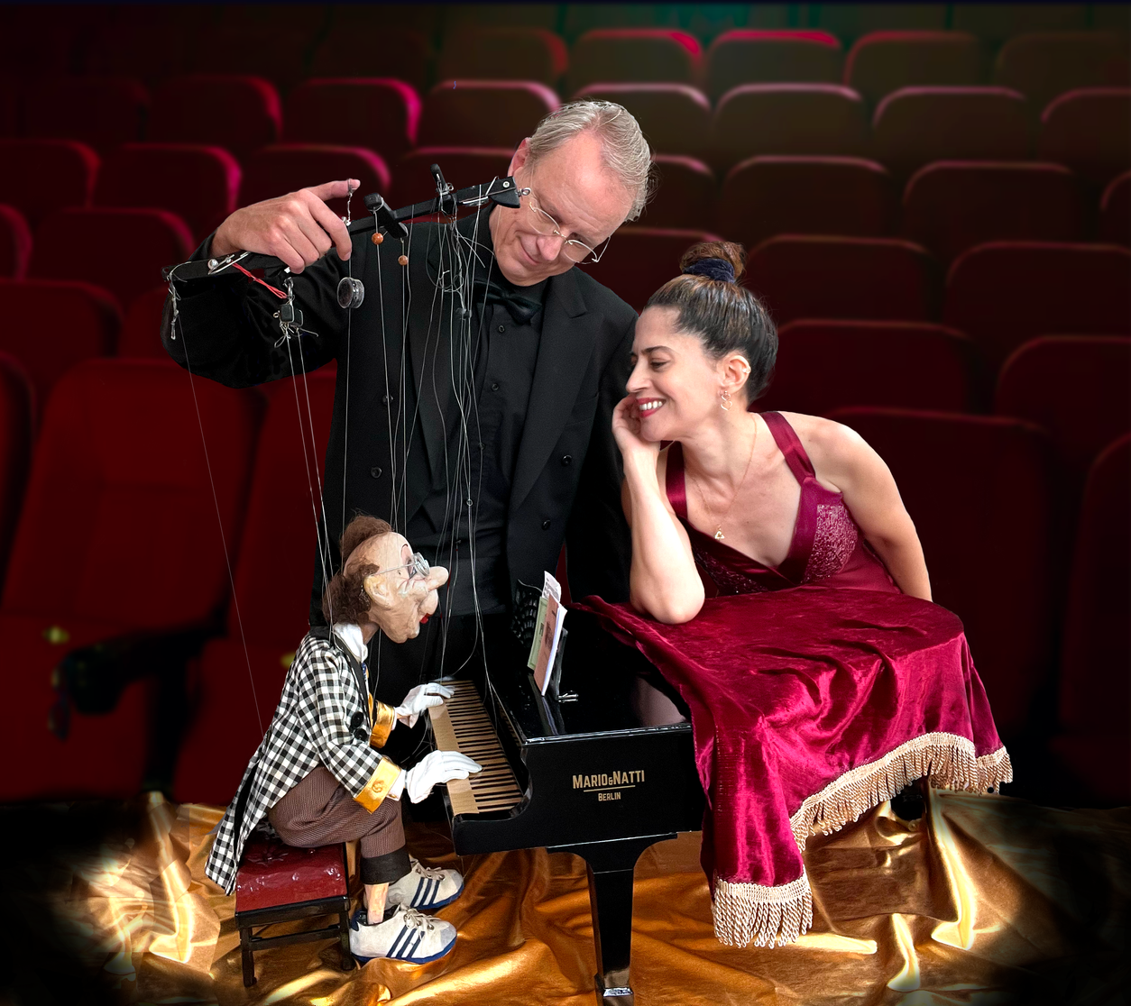 Winzig und witzig, sangvoll und klangvoll: die Marionette Mario (Klavier) und die Sängerin Natti (Sopran) sind das Duo MarioNatti. Opernhits und Evergreens werden Ihnen auf eine Weise präsentiert, wie Sie sie wohl noch nie gehört und gesehen haben!
