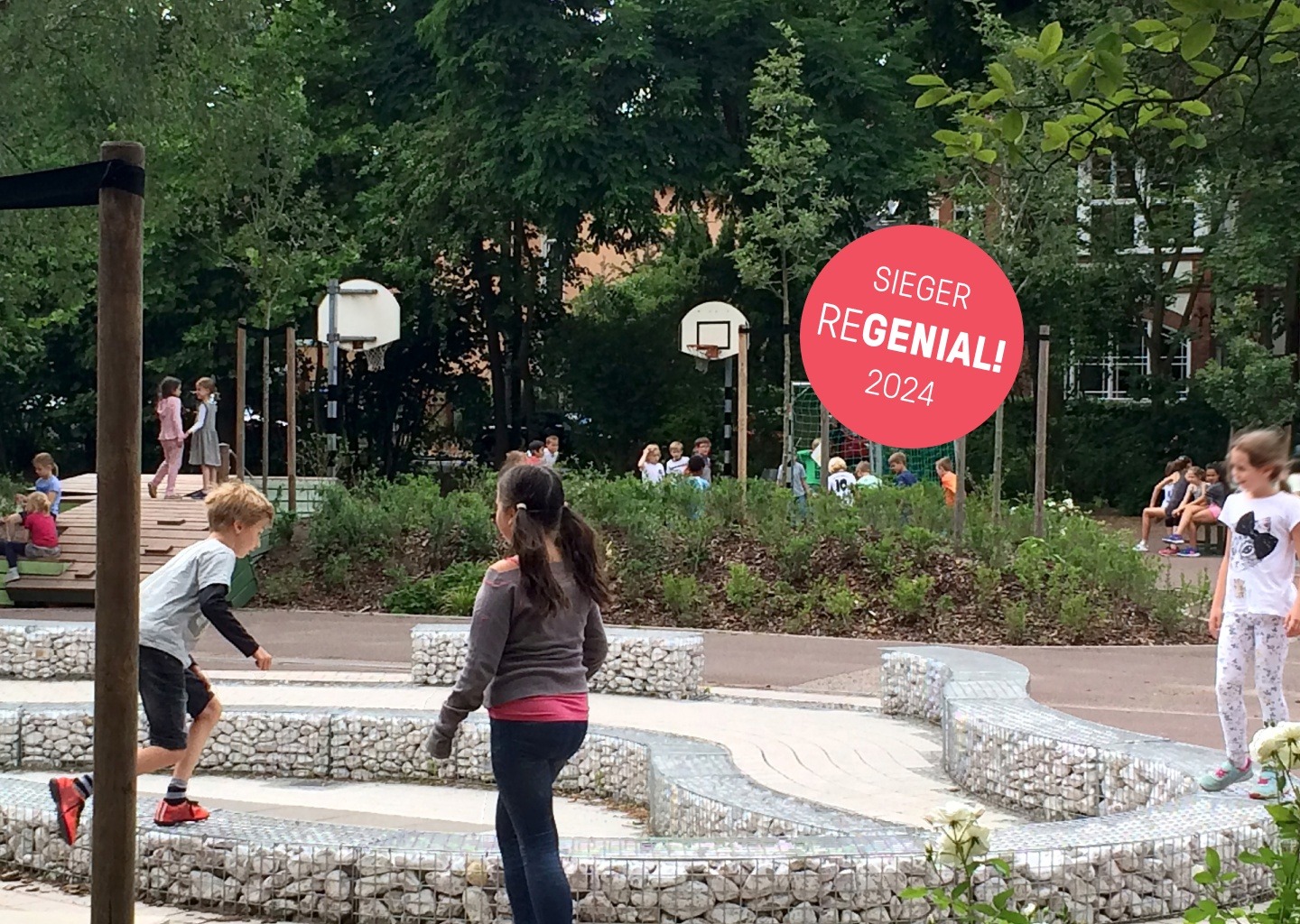 Gezeigt werden kleine wie große Bauvorhaben, die mit Maßnahmen wie Dach- und Fassadenbegrünung, Flächenentsiegelung, Versickerungsanlagen oder Zisternen das Regenwasser klug bewirtschaften – und so aktiv zur Klimaanpassung beitragen.