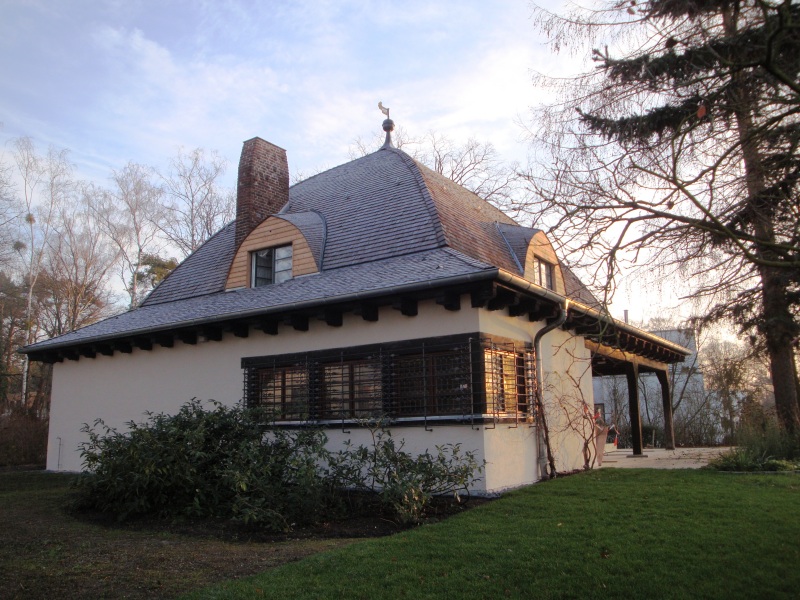 Im Herzen der ehemaligen Villenkolonie Alsen am Wannsee liegt unweit der Villa Liebermann eines der bedeutendsten Landhäuser von Berlin im Dornröschenschlaf. Aus Anlass des 80. bzw. 75. Todestags seiner Erbauer und des 100. Todestags seines Architekten soll in diesem Monat an das Landhaus Oppenheim erinnert werden – zumal dessen zukünftige Nutzung momentan ungewiss ist. Anders als das vom gleichen Architekten stammende Landhaus Springer, das deutlich sichtbar an der höchsten Stelle des Grundstücks Am Großen Wannsee 39 thront, ist das benachbarte Landhaus Oppenheim seit den 1980er Jahren durch eine Wohnblockbebauung seiner stadträumlichen Wirkung vollends beraubt. Allein eine schmale Sichtachse am ehemaligen Wendepunkt der Straße gibt einen eingeschränkten Blick auf das Gebäude frei. Erreichbar ist es nur noch über das Grundstück Zum Heckeshorn Nr. 38. – Wie aber ist es zu dieser Situation gekommen?