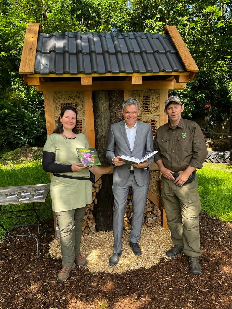 Gemeinsam mit dem NaturRanger Björn Lindner ließ es sich der Bezirksbürgermeister nicht nehmen, selbst das Wildbienenhotel zu eröffnen.